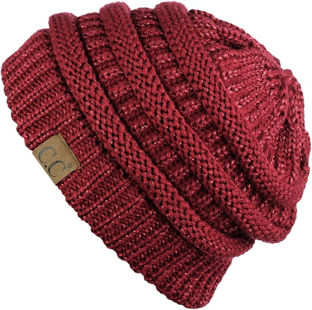 imageCC Trendy Warm Chunky Soft Stretch Cable Knit BeanieBurgundy Metallic