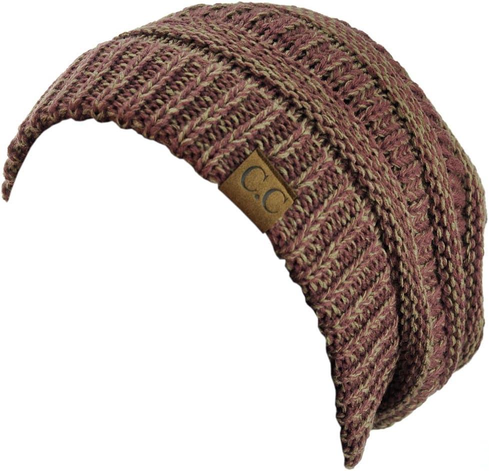 C.C Trendy Warm Chunky Soft Stretch Cable Knit Beanie(Raspberry/Beige)