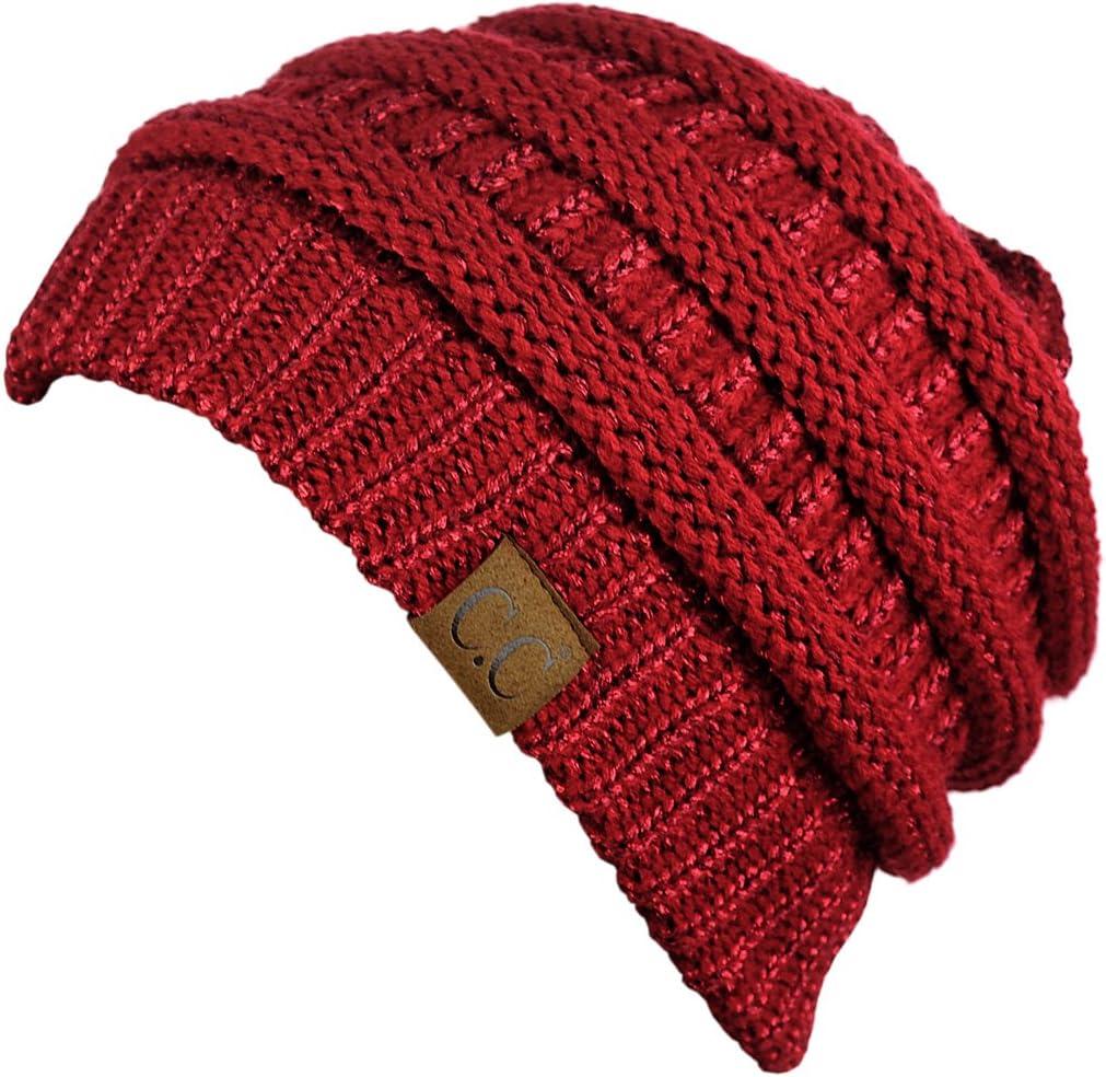 C.C Trendy Warm Chunky Soft Stretch Cable Knit Beanie(Red Metallic)