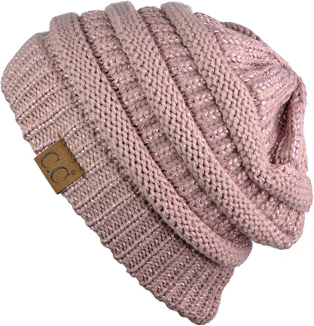 imageCC Trendy Warm Chunky Soft Stretch Cable Knit BeanieRose Metallic