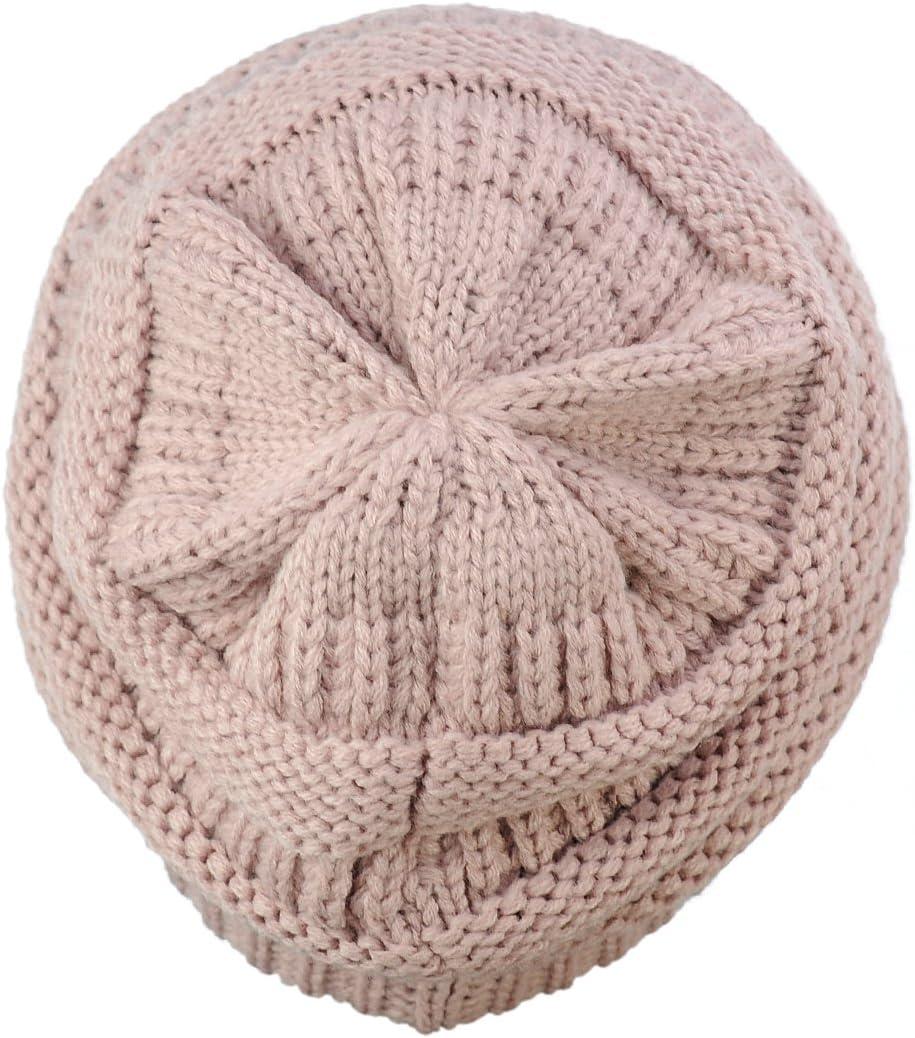 C.C Trendy Warm Chunky Soft Stretch Cable Knit Beanie(Rose Pink)
