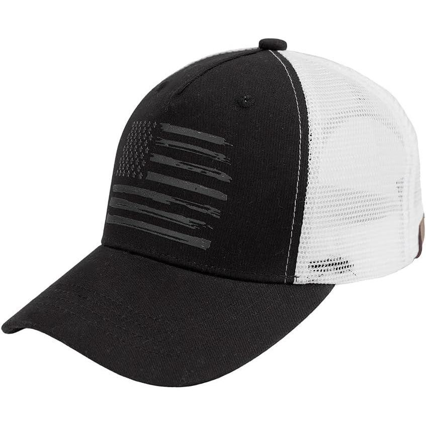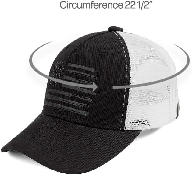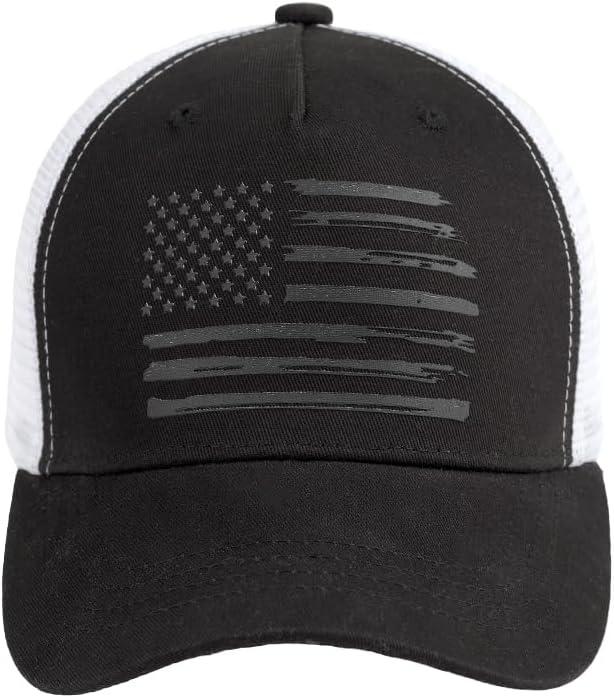 C.C Trucker Hat – American Flag Mesh Back Cap for Unisex, Adjustable Snapback, Laser Print Patriotic Baseball Cap(Black White)