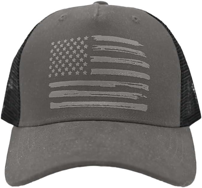 imageCC Trucker Hat  American Flag Mesh Back Cap for Unisex Adjustable Snapback Laser Print Patriotic Baseball CapGrey  Black