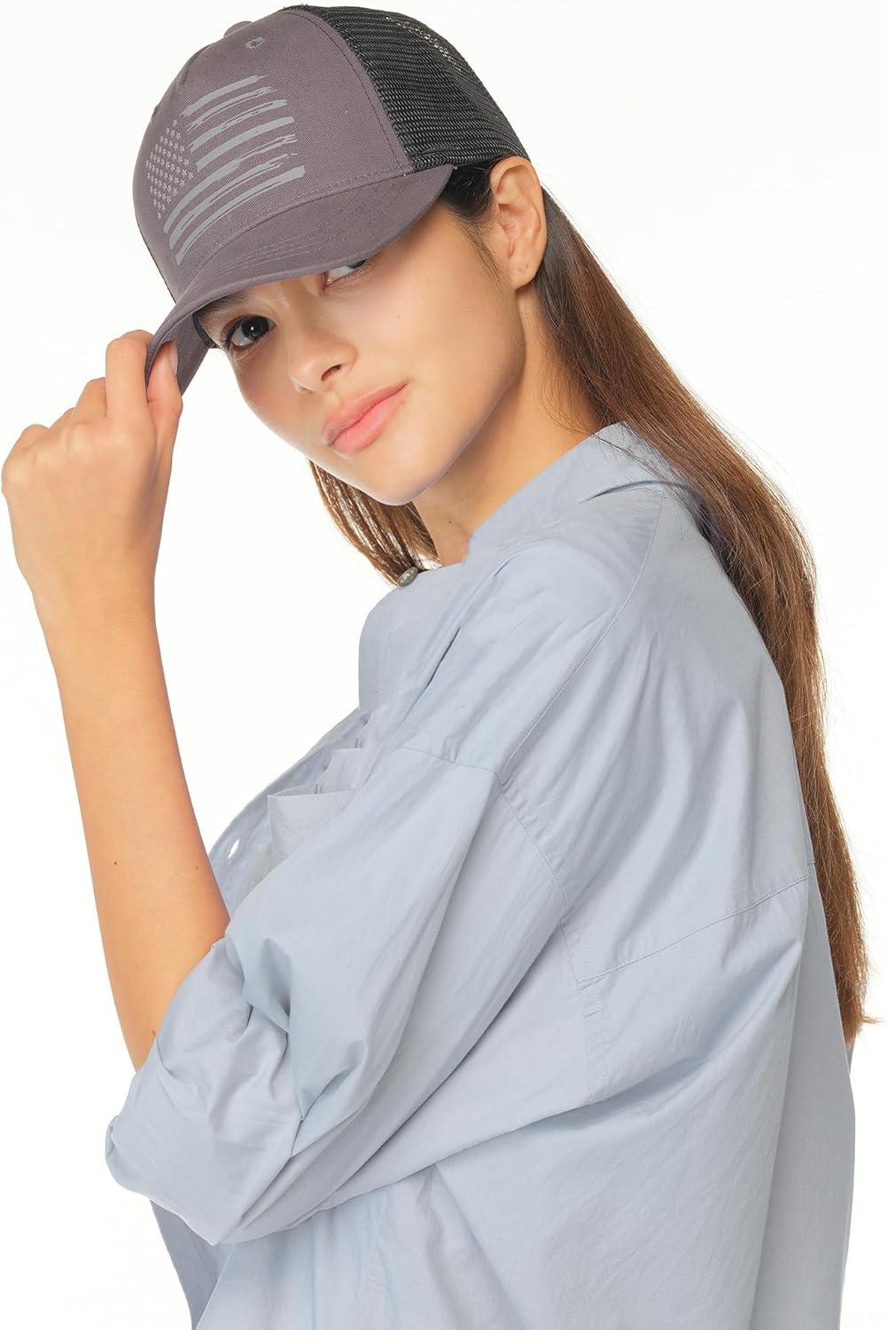 C.C Trucker Hat – American Flag Mesh Back Cap for Unisex, Adjustable Snapback, Laser Print Patriotic Baseball Cap(Grey Black)