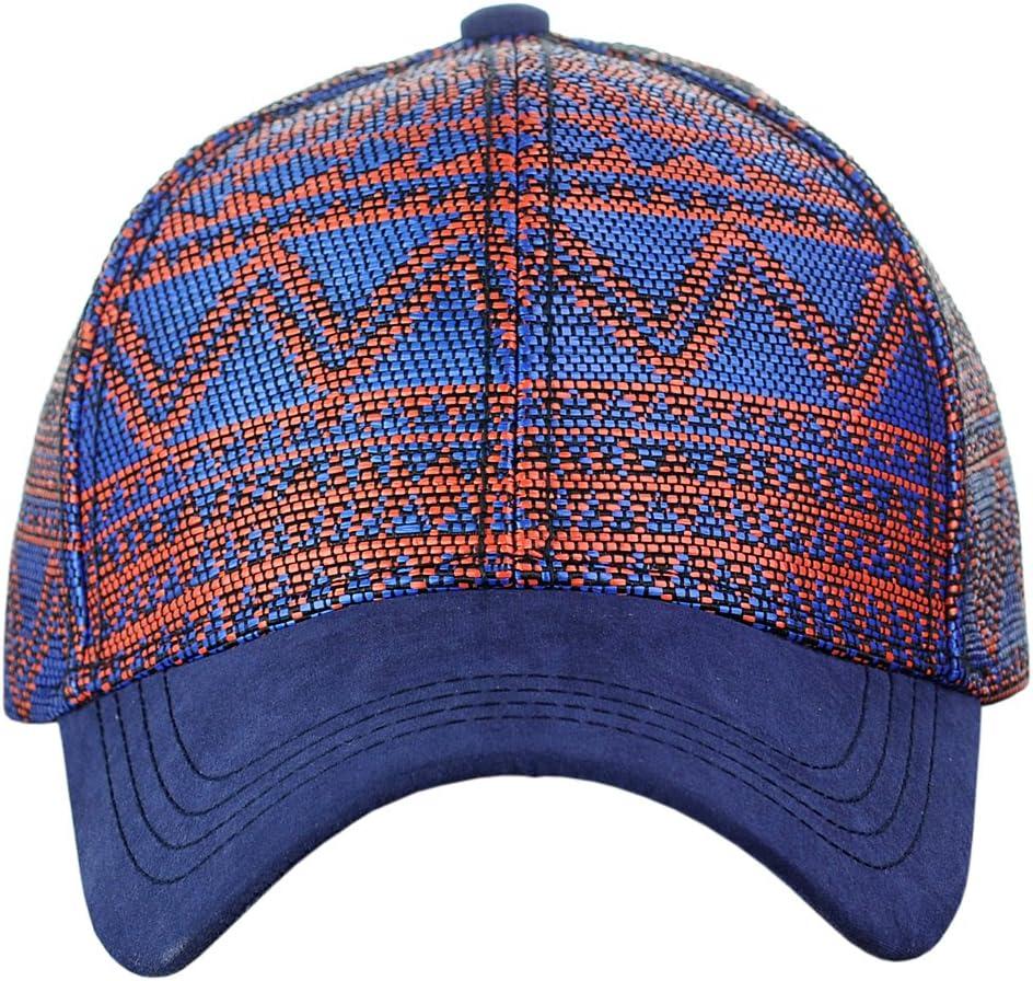 C.C Unisex Abstract Navajo Weaved Panel Adjustable Precurved Baseball Cap Hat(Orange/Blue)