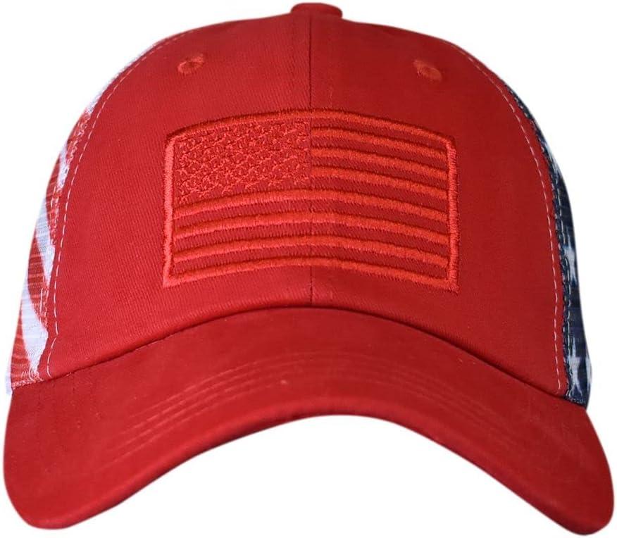 C.C Unisex Adjustable Trucker Baseball Cap Hat(Printed American Flag Red)