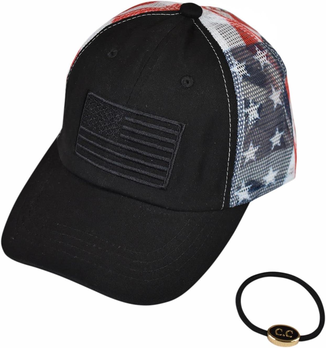 C.C Unisex Adjustable Trucker Baseball Cap Hat(Printed American Flag Navy)