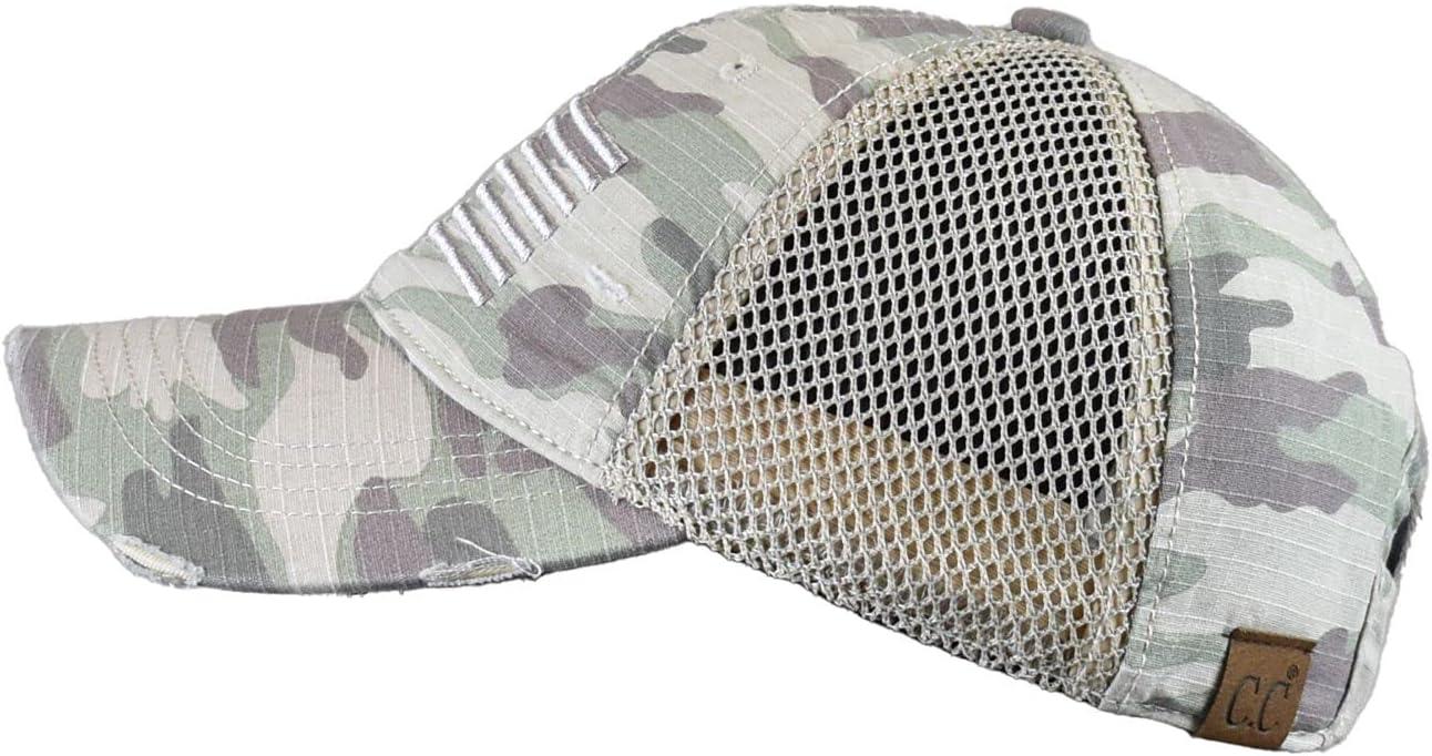 C.C Unisex Adjustable Trucker Baseball Cap Hat(Usa Flag Camo Beige)