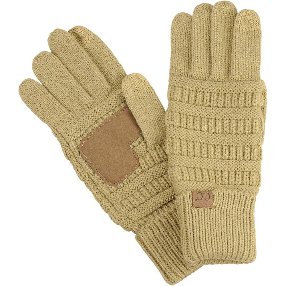 imageCC Unisex Cable Knit Inner Lined AntiSlip Touchscreen Texting GlovesCamel