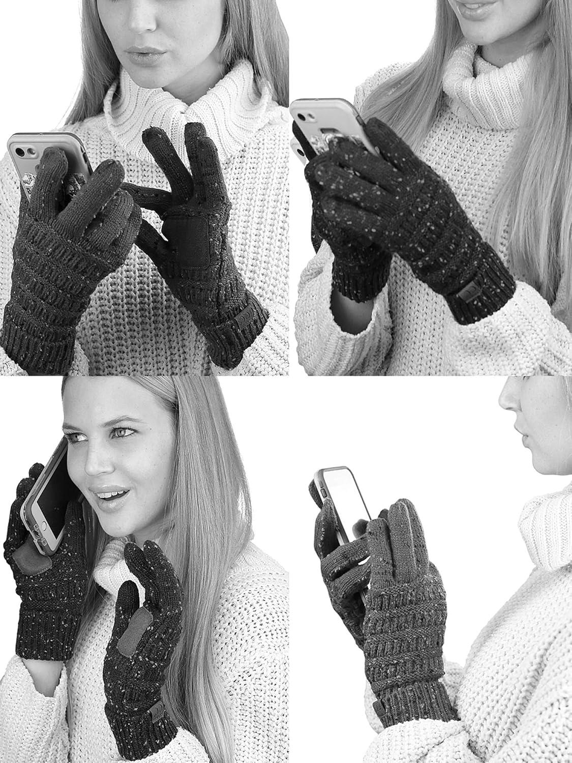 imageCC Unisex Cable Knit Inner Lined AntiSlip Touchscreen Texting GlovesLight Melange Gray