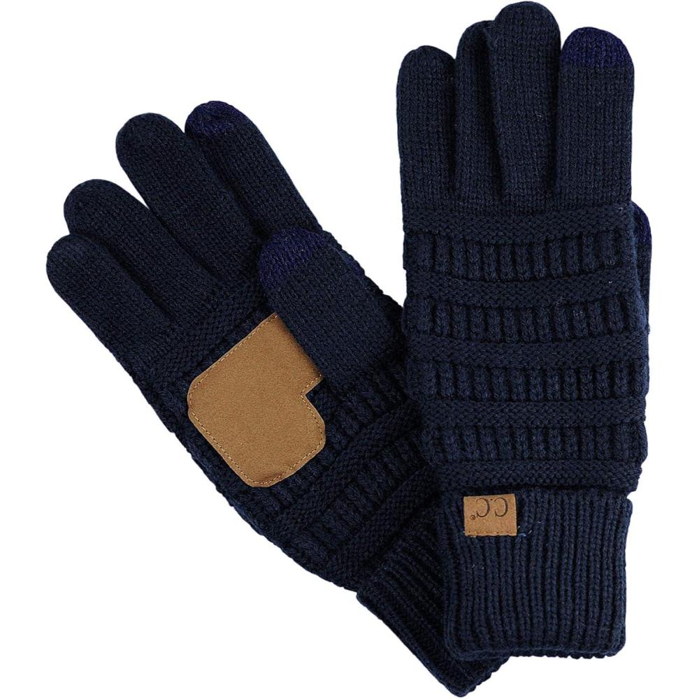 imageCC Unisex Cable Knit Inner Lined AntiSlip Touchscreen Texting GlovesNavy