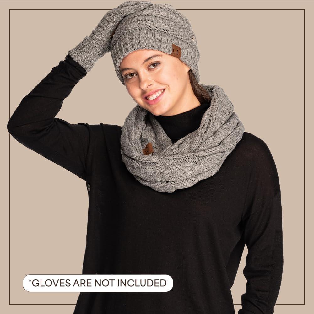 C.C Unisex Cable Knit Winter Beanie and Scarf Set, 2 Piece, Fall-Winter Hat and Scarf Set for Women(Lt. Mel Grey)