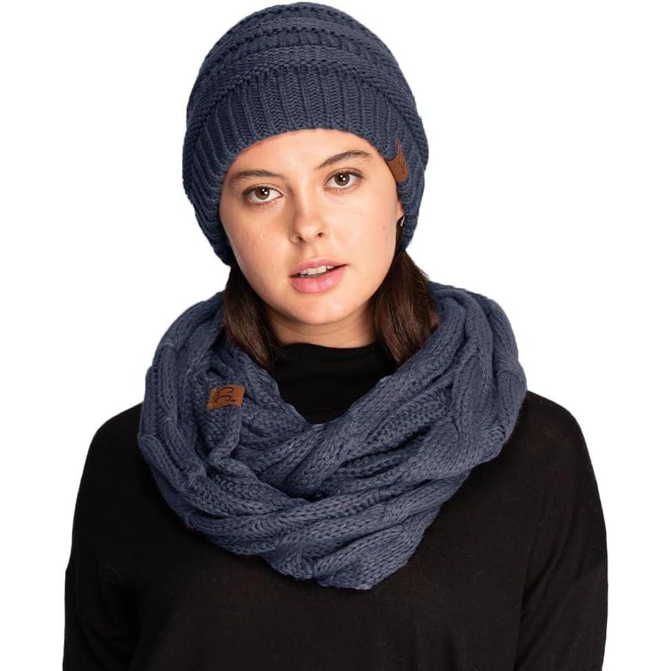 C.C Unisex Cable Knit Winter Beanie and Scarf Set, 2 Piece, Fall-Winter Hat and Scarf Set for Women(Navy)
