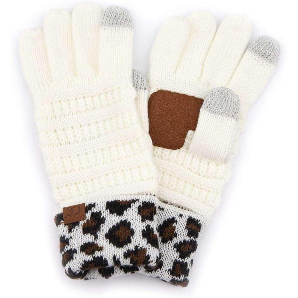 imageCC Unisex Cable Knit Winter Warm AntiSlip Touchscreen Texting GlovesLeopard Ivory