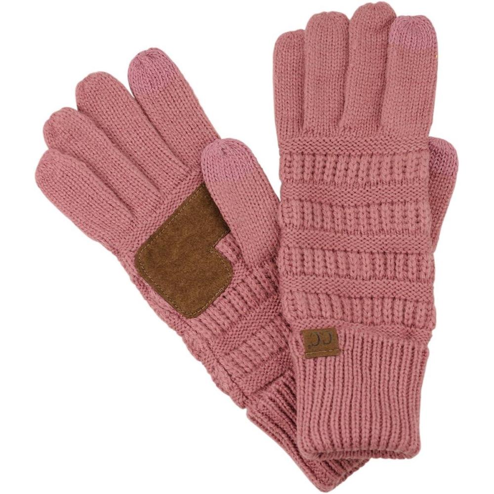C.C Unisex Cable Knit Winter Warm Anti-Slip Touchscreen Texting Gloves(Mauve)