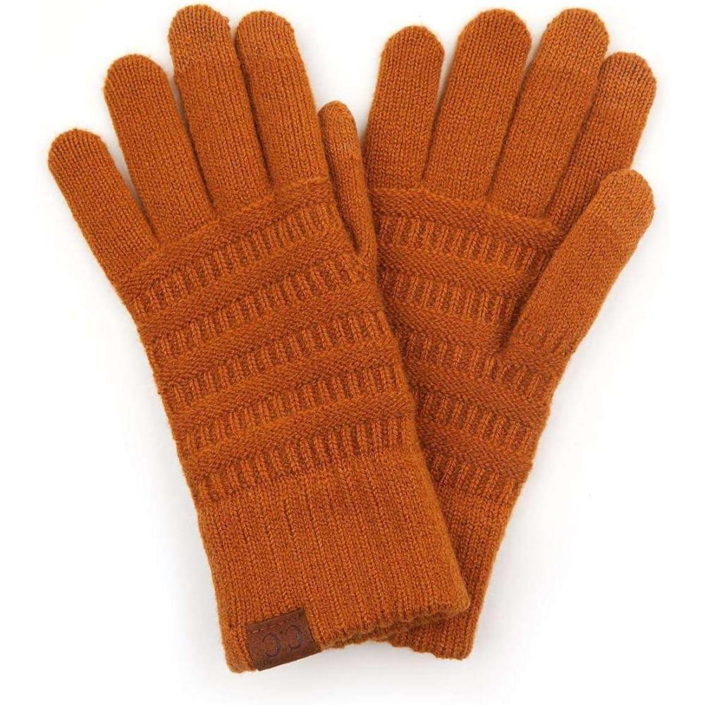 C.C Unisex Cable Knit Winter Warm Anti-Slip Touchscreen Texting Gloves(Simple Golden Camel)