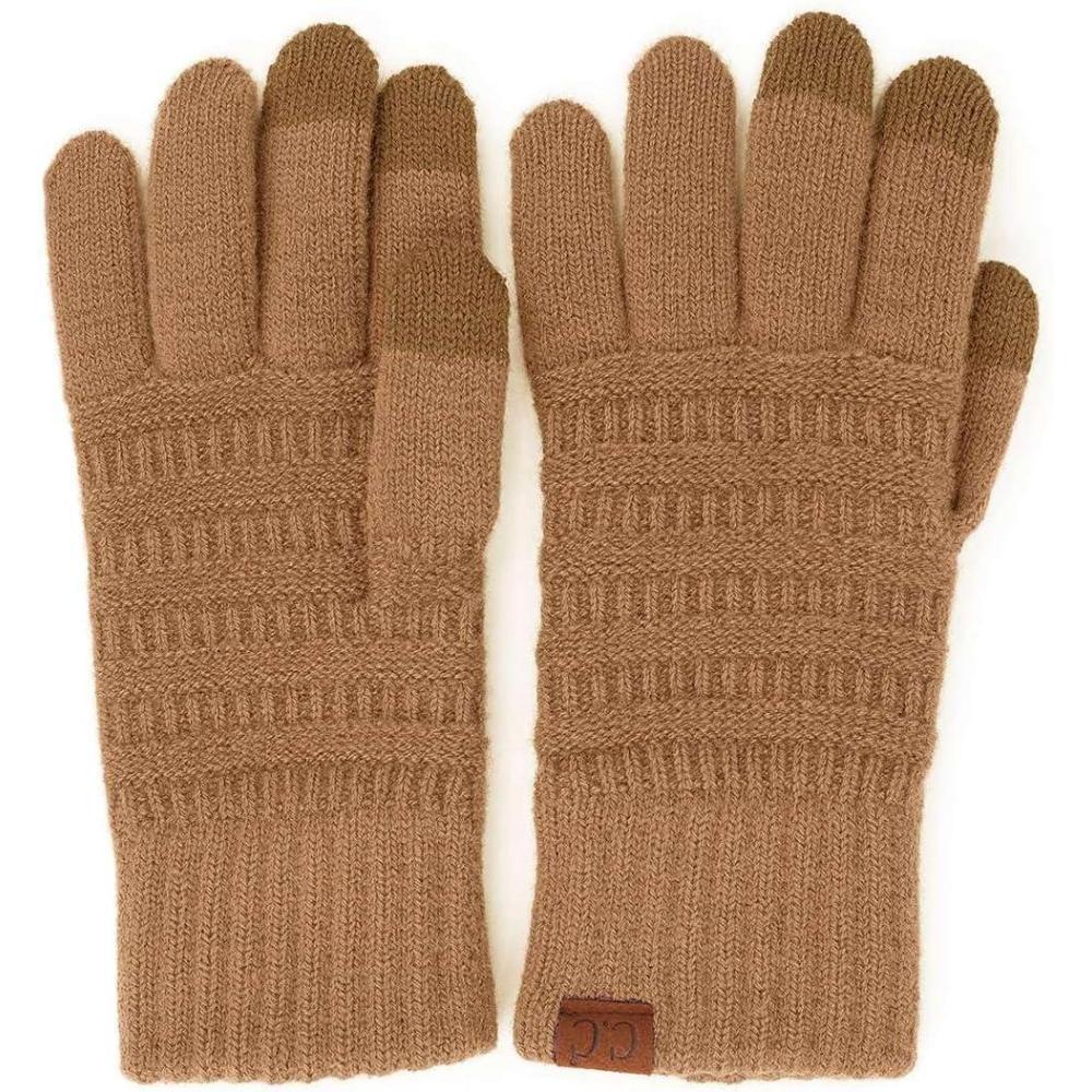 C.C Unisex Cable Knit Winter Warm Anti-Slip Touchscreen Texting Gloves(Simple Nude)