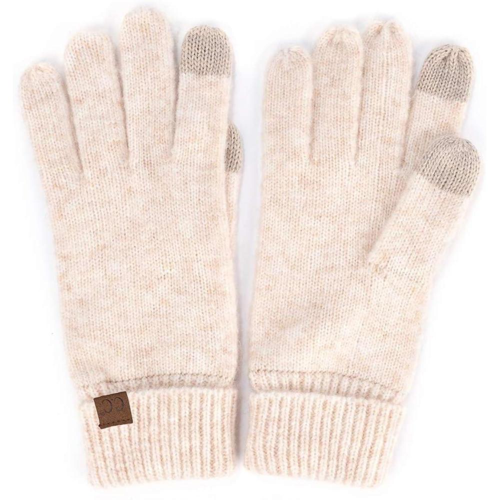 C.C Unisex Cable Knit Winter Warm Anti-Slip Touchscreen Texting Gloves(Simple Pastel Oatmeal)