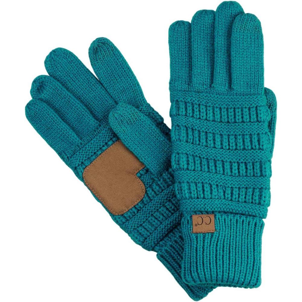 C.C Unisex Cable Knit Winter Warm Anti-Slip Touchscreen Texting Gloves(Teal)