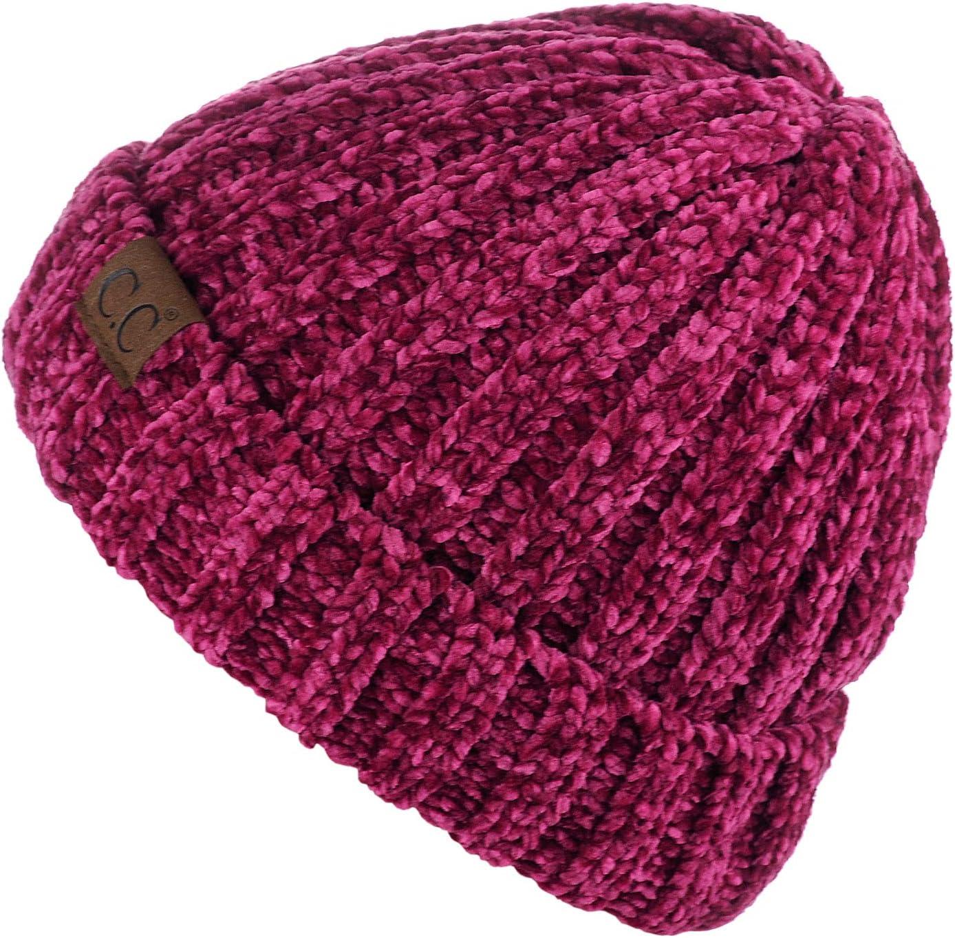 C.C Unisex Chenille Soft Warm Stretchy Thick Cuffed Knit Beanie Cap Hat(Burgundy)