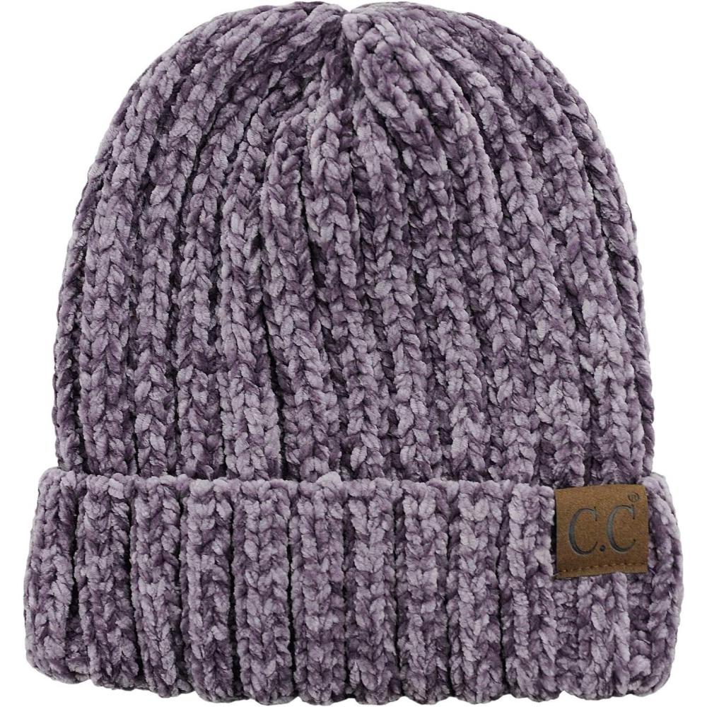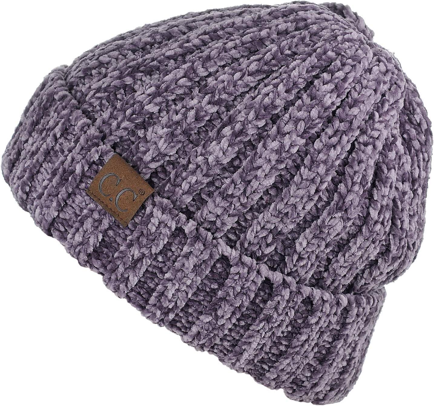 C.C Unisex Chenille Soft Warm Stretchy Thick Cuffed Knit Beanie Cap Hat(Violet)