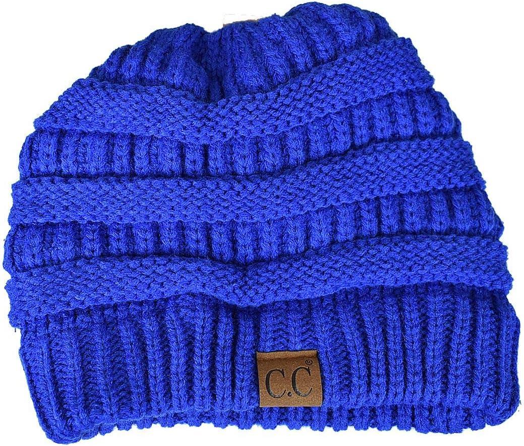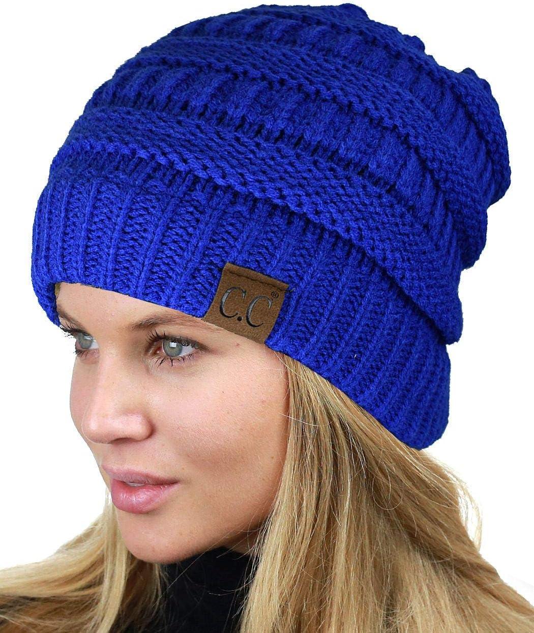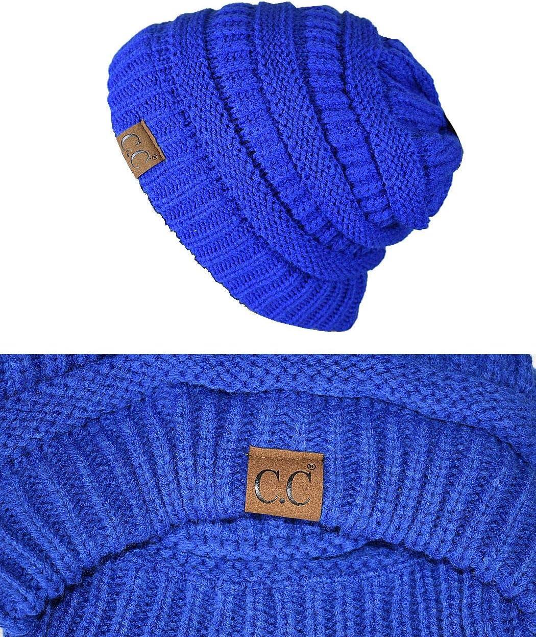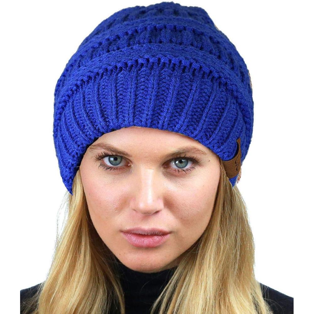 imageCC Unisex Chunky Soft Stretch Cable Knit Warm Fuzzy Lined Skully BeanieRoyal