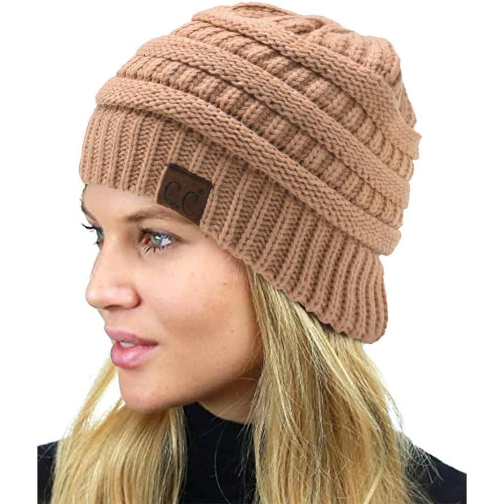 imageCC Unisex Chunky Soft Stretch Cable Knit Warm Fuzzy Lined Skully BeanieTaupe