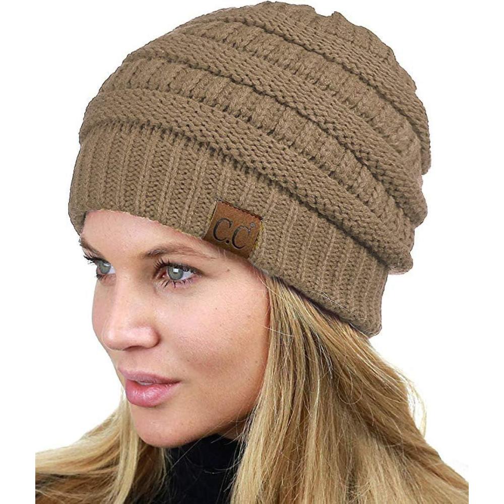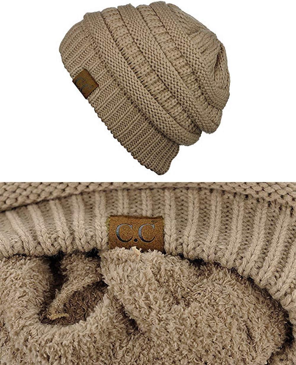 imageCC Unisex Chunky Soft Stretch Cable Knit Warm Fuzzy Lined Skully BeanieTaupe