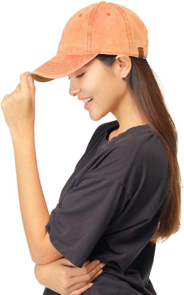 C.C Unisex Classic Blank Low Profile Cotton Unconstructed Baseball Cap Dad Hat(Distressed Orange)