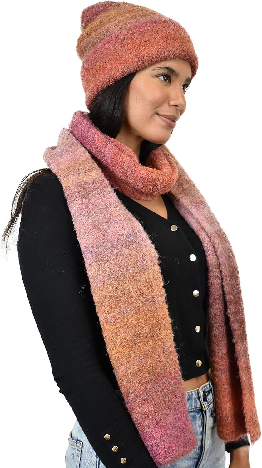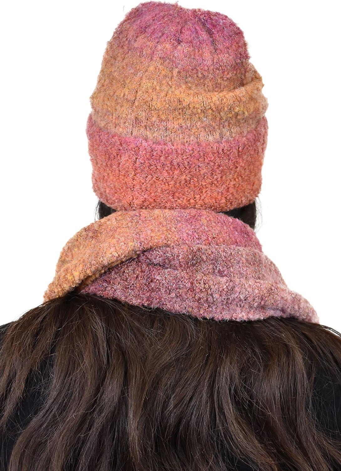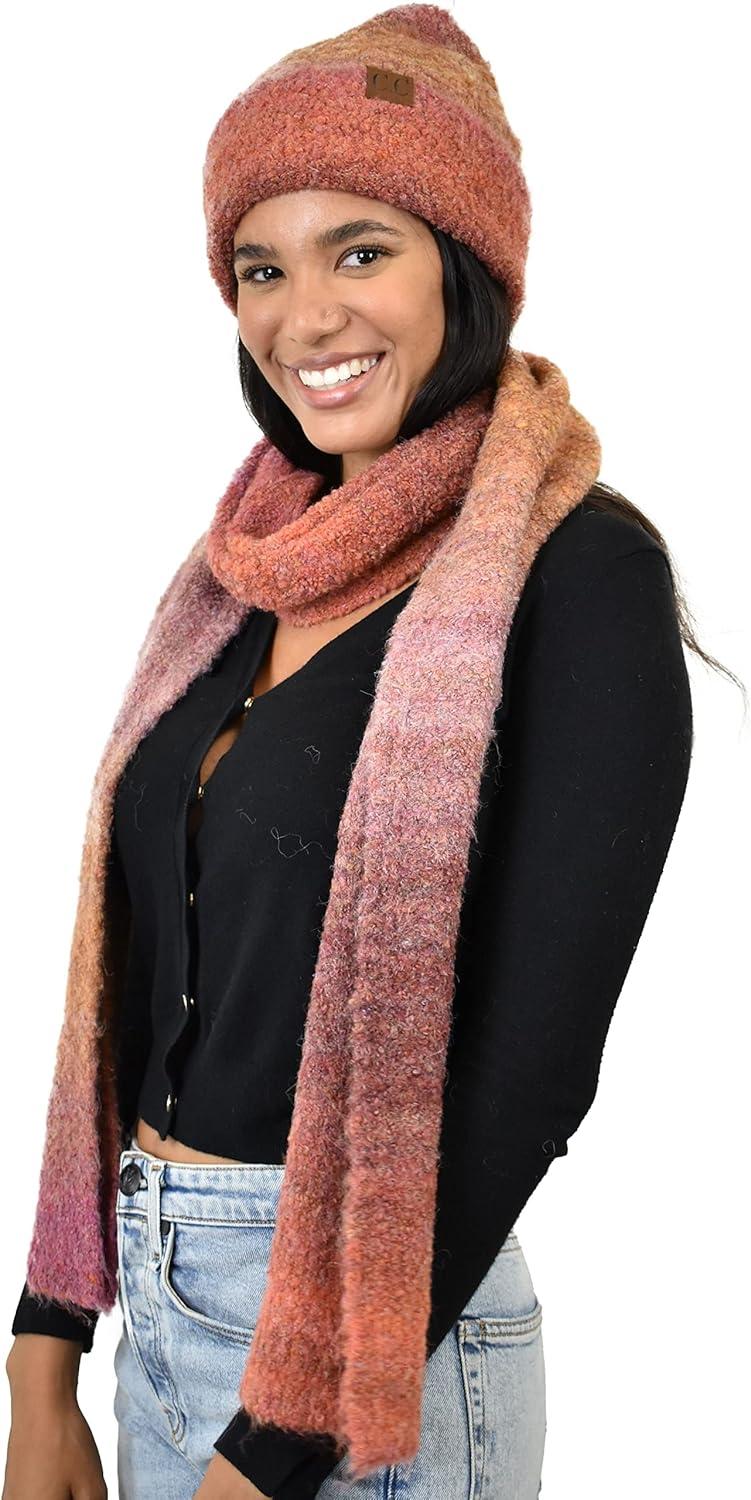 C.C Unisex Eco-Friendly Recycled Yarn Wool Blend Convertible Beanie and Scarf Set and Scarf Set(Acai Berry Mix)