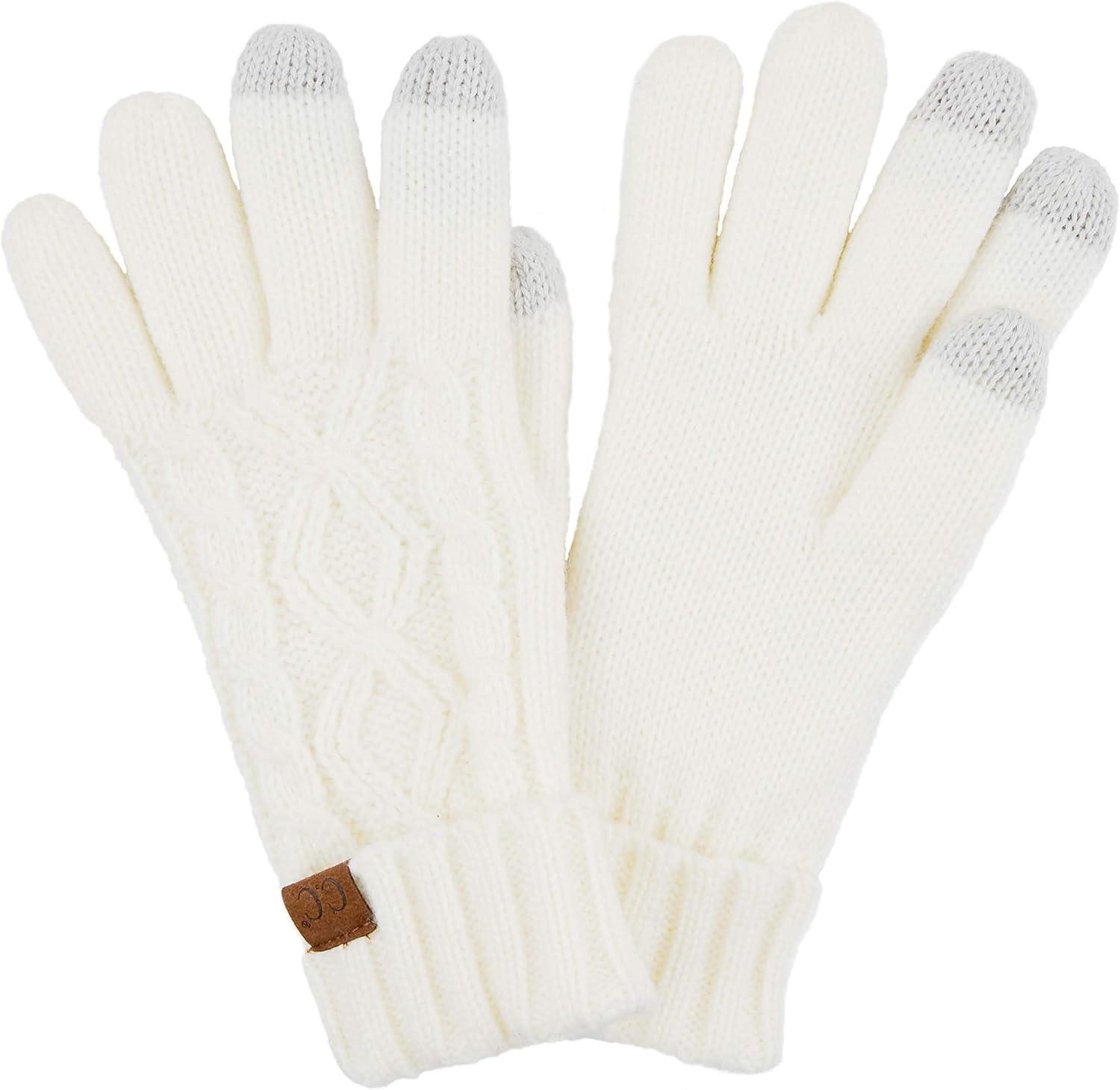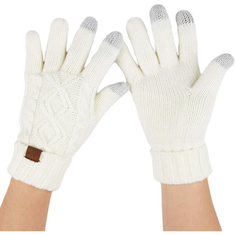 C.C Unisex Knit Thick Warm Soft Stretch Fuzzy Lined Solid Ribbed Glove with Smart Tips (G-25)(G-707)(Cable Knit-ivory)