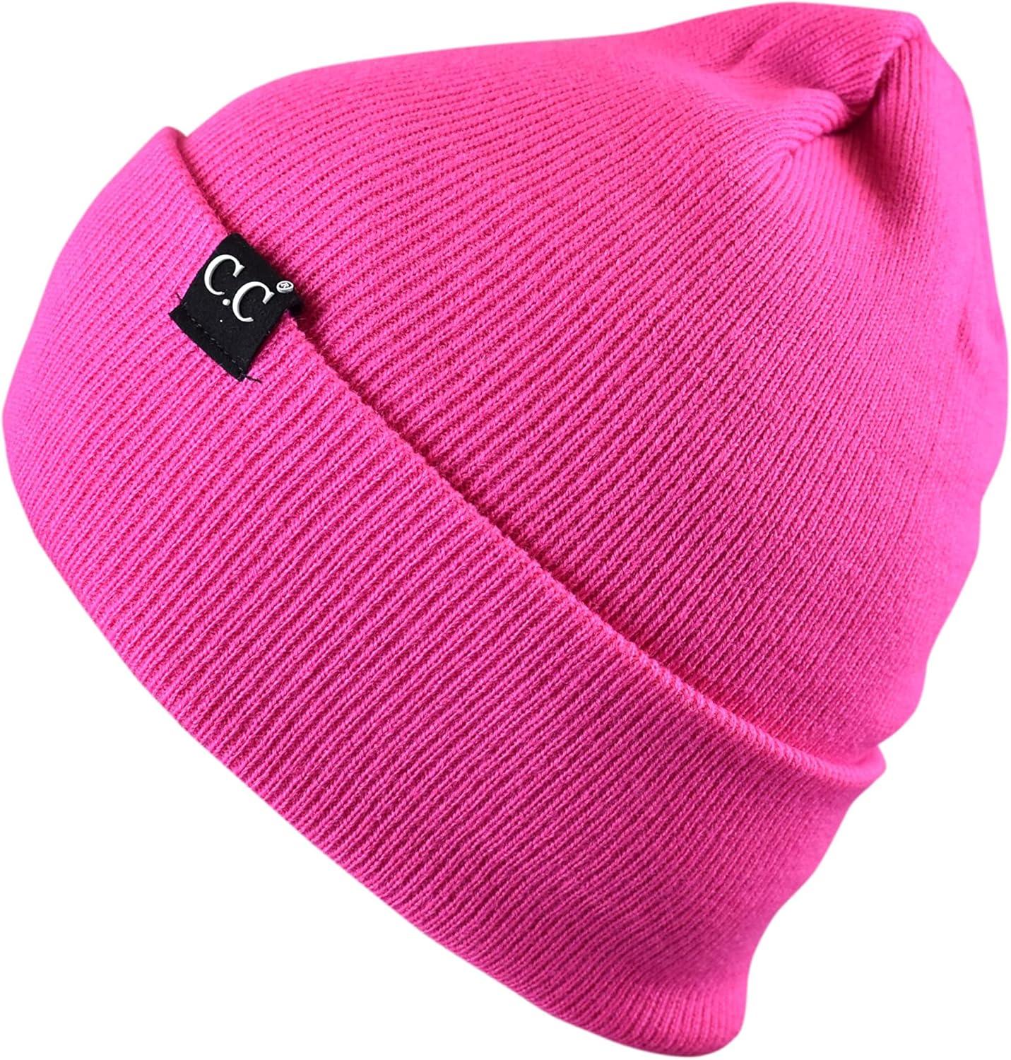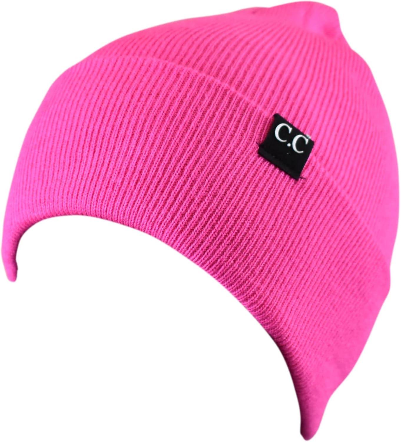 imageCC Unisex Plain Cuff Skull Cap Winter Knit Beanie HatBlack Label Fuchsia