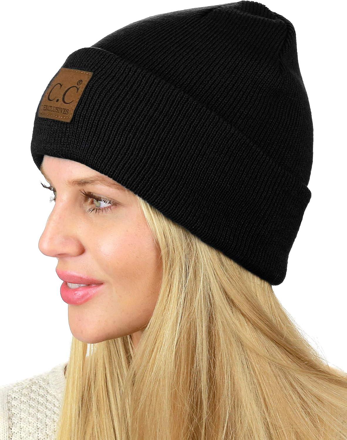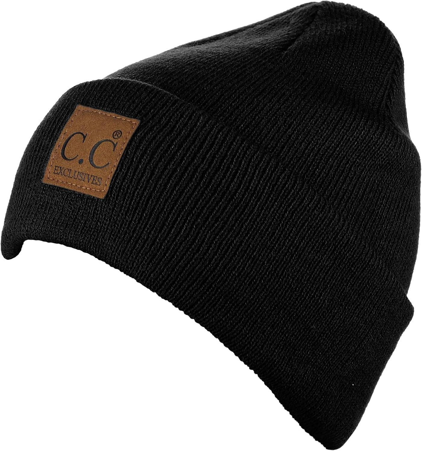 C.C Unisex Plain Cuff Skull Cap Winter Knit Beanie Hat(Black Label Black)