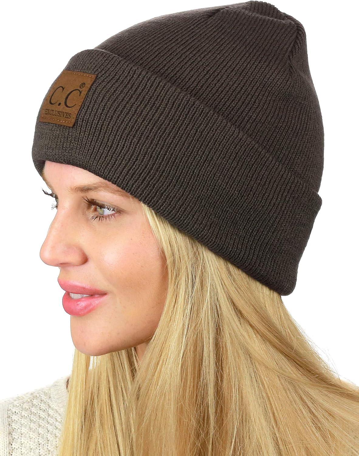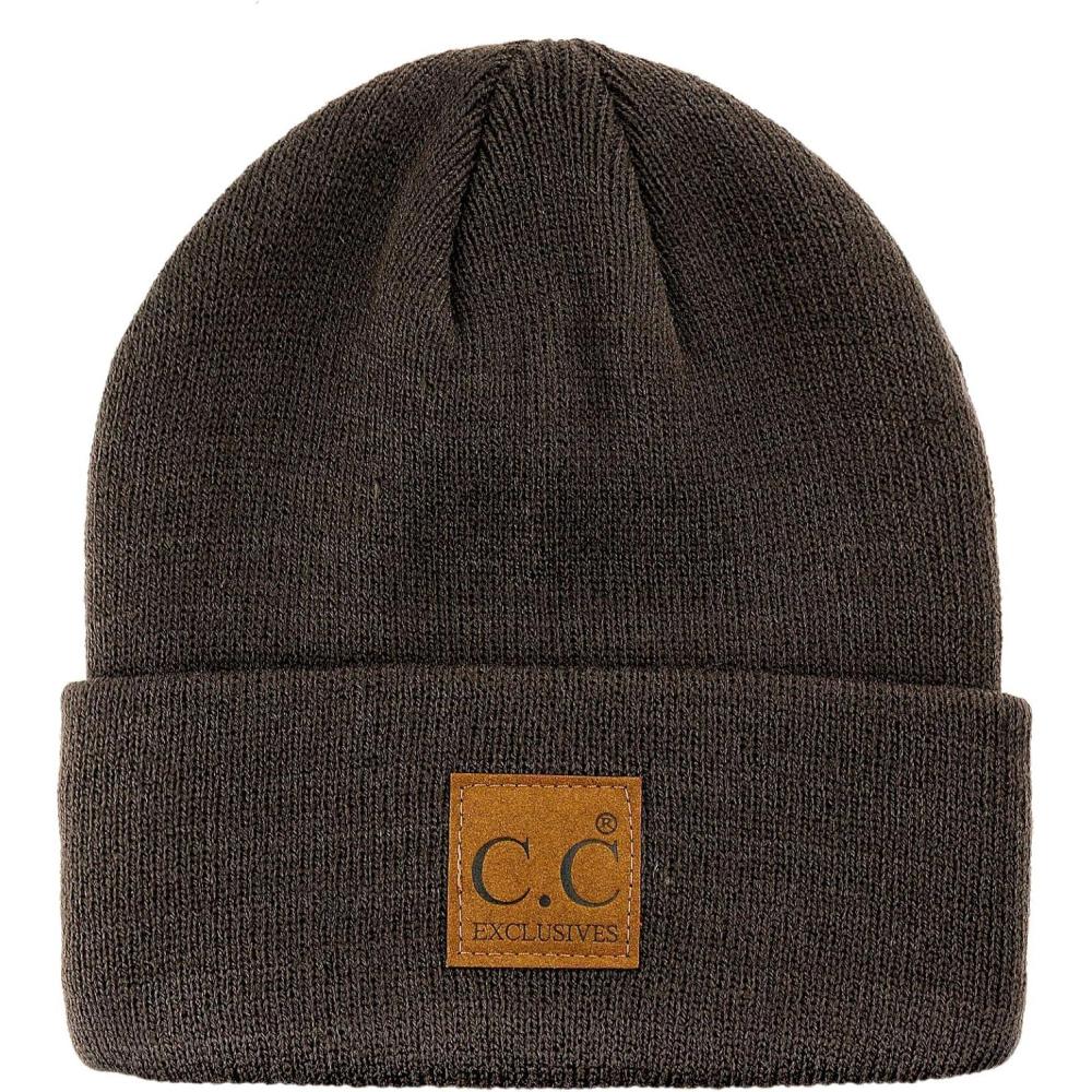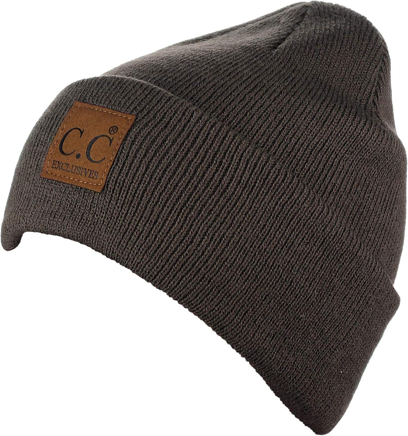 C.C Unisex Plain Cuff Skull Cap Winter Knit Beanie Hat(Brown)