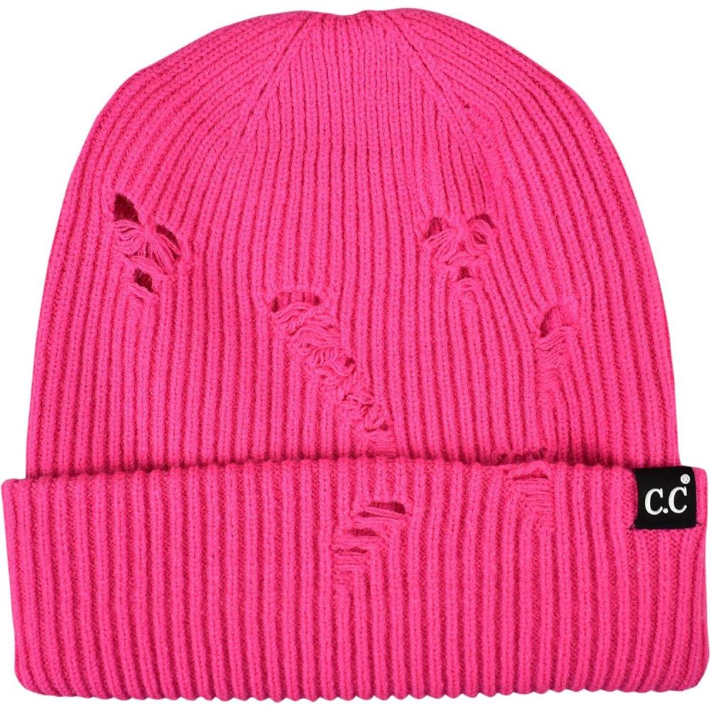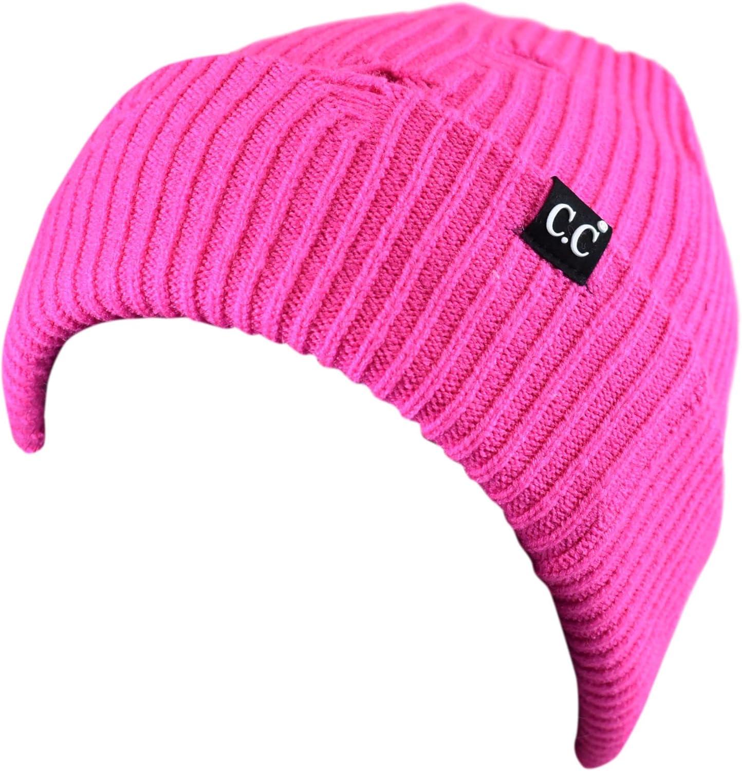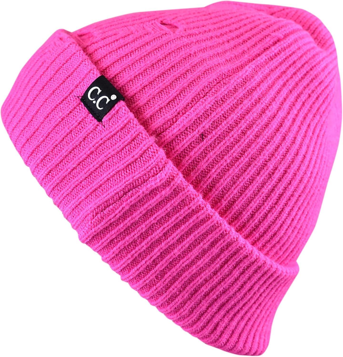 C.C Unisex Plain Cuff Skull Cap Winter Knit Beanie Hat(Distressed Fuchsia)