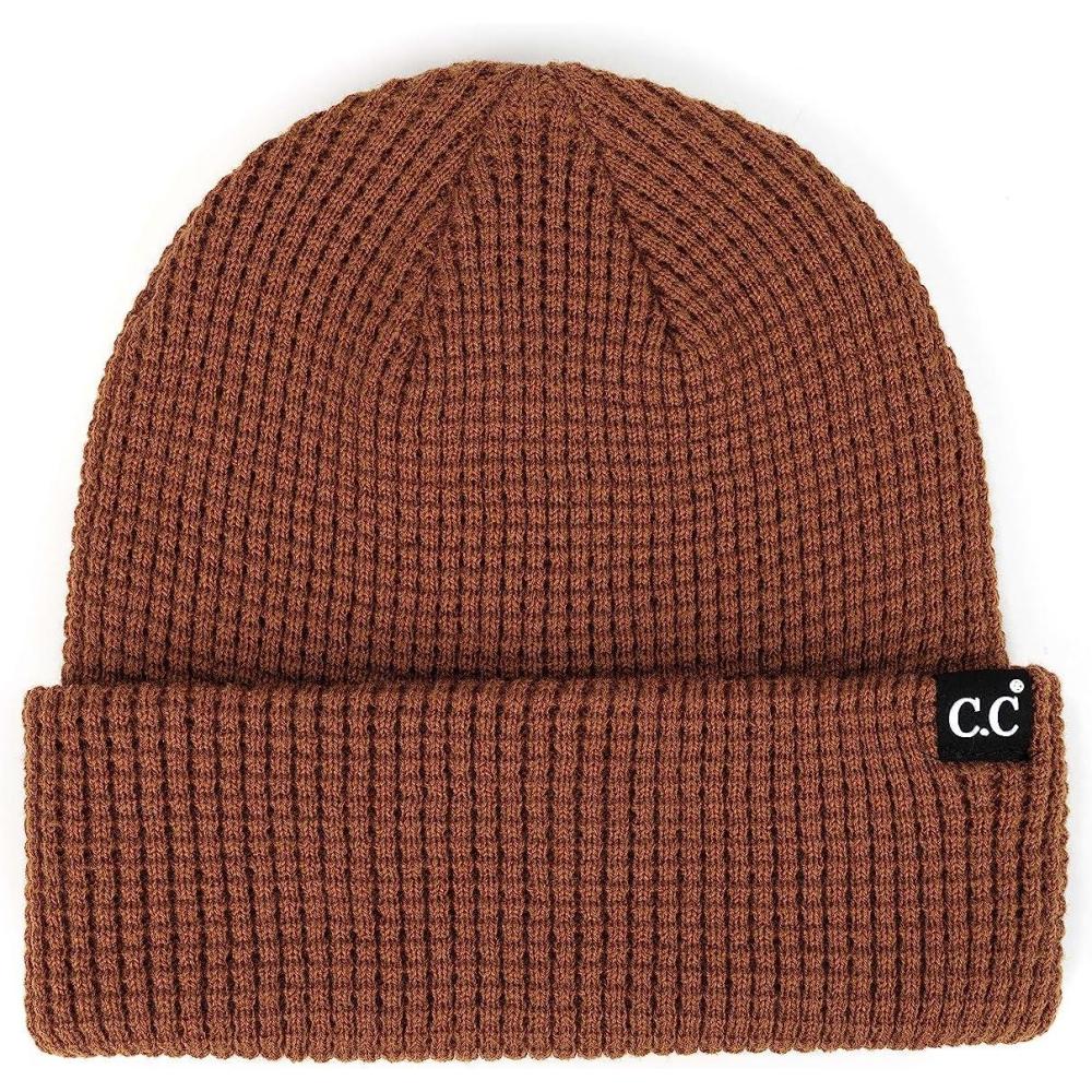 C.C Unisex Plain Cuff Skull Cap Winter Knit Beanie Hat(Square Stitch Chocolate Brown)