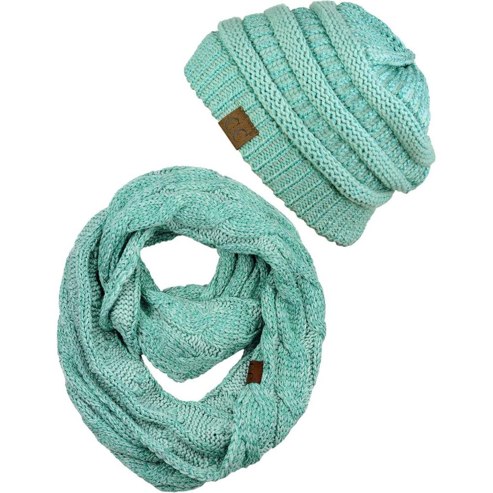 imageCC Unisex Soft Stretch Chunky Cable Knit Beanie and Infinity Loop Scarf SetMint