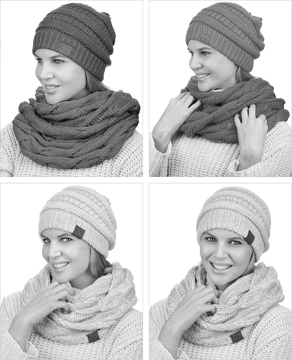 imageCC Unisex Soft Stretch Chunky Cable Knit Beanie and Infinity Loop Scarf SetPeanut