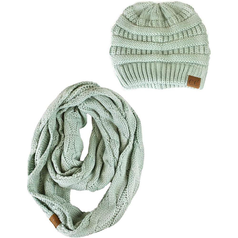 imageCC Unisex Soft Stretch Chunky Cable Knit Beanie and Infinity Loop Scarf SetPale Mint