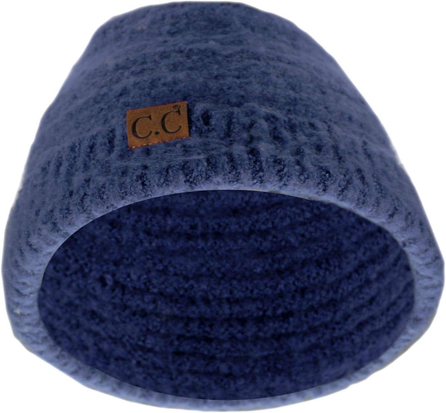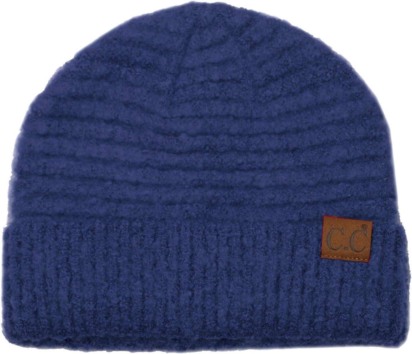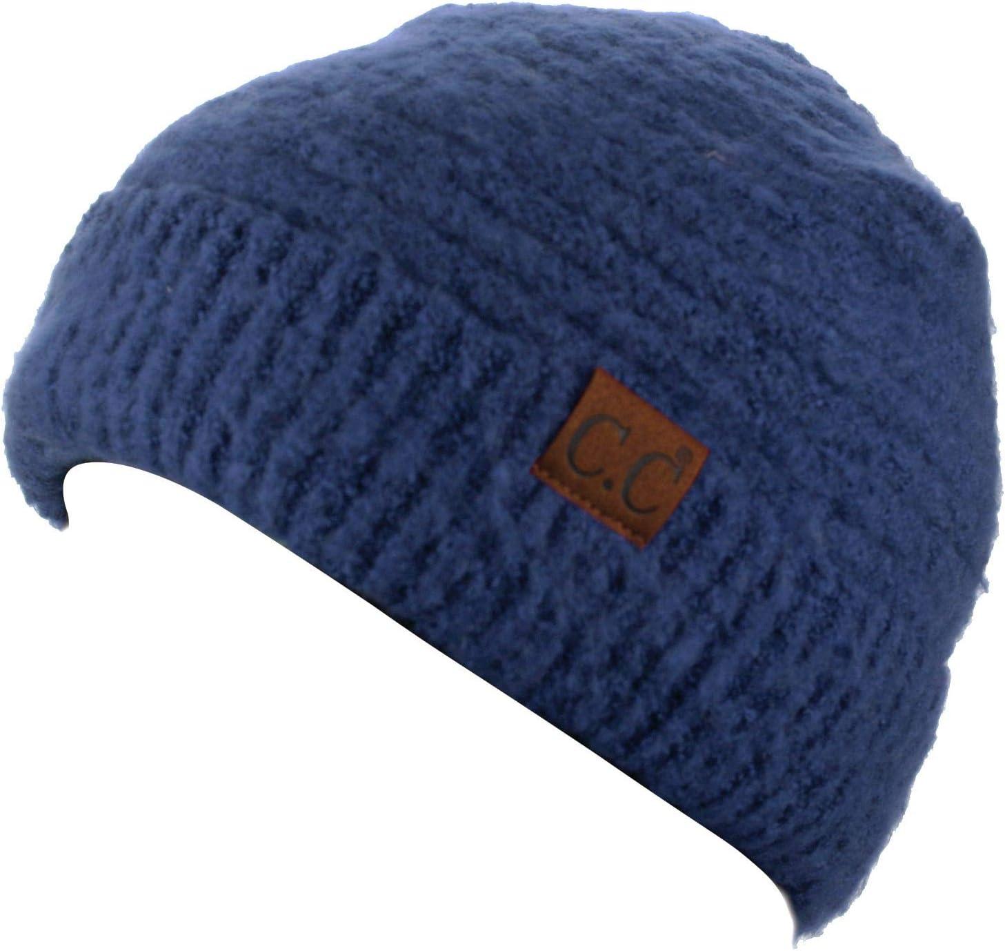 C.C Unisex Solid Color Warm Boucle Knit Skull Cap Cuff Beanie(Denim)