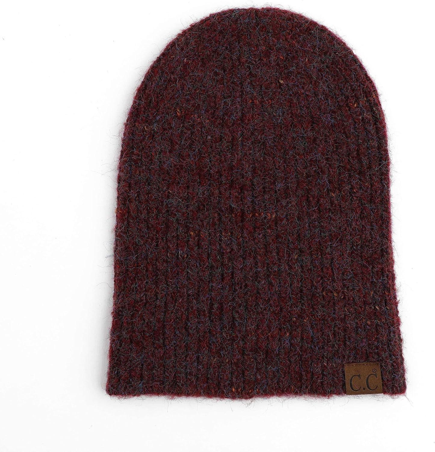 C.C Unisex Warm Soft Recycled Yarn Skully Beanie(2 Way Cuff Wine)