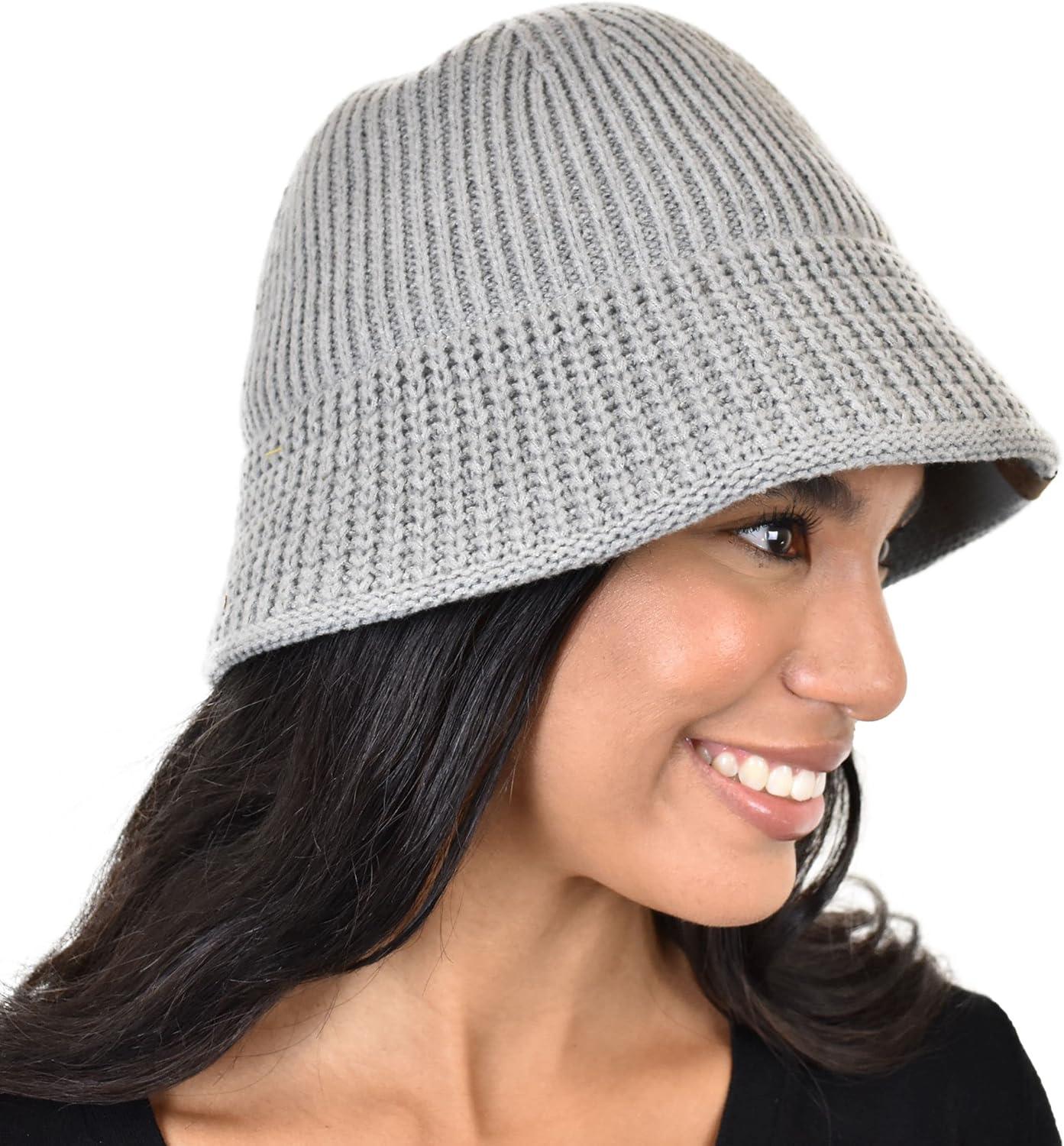 C.C Unisex Winter Cable Knit Packable Vintage Cloche Bucket Hat(Earth Gray)