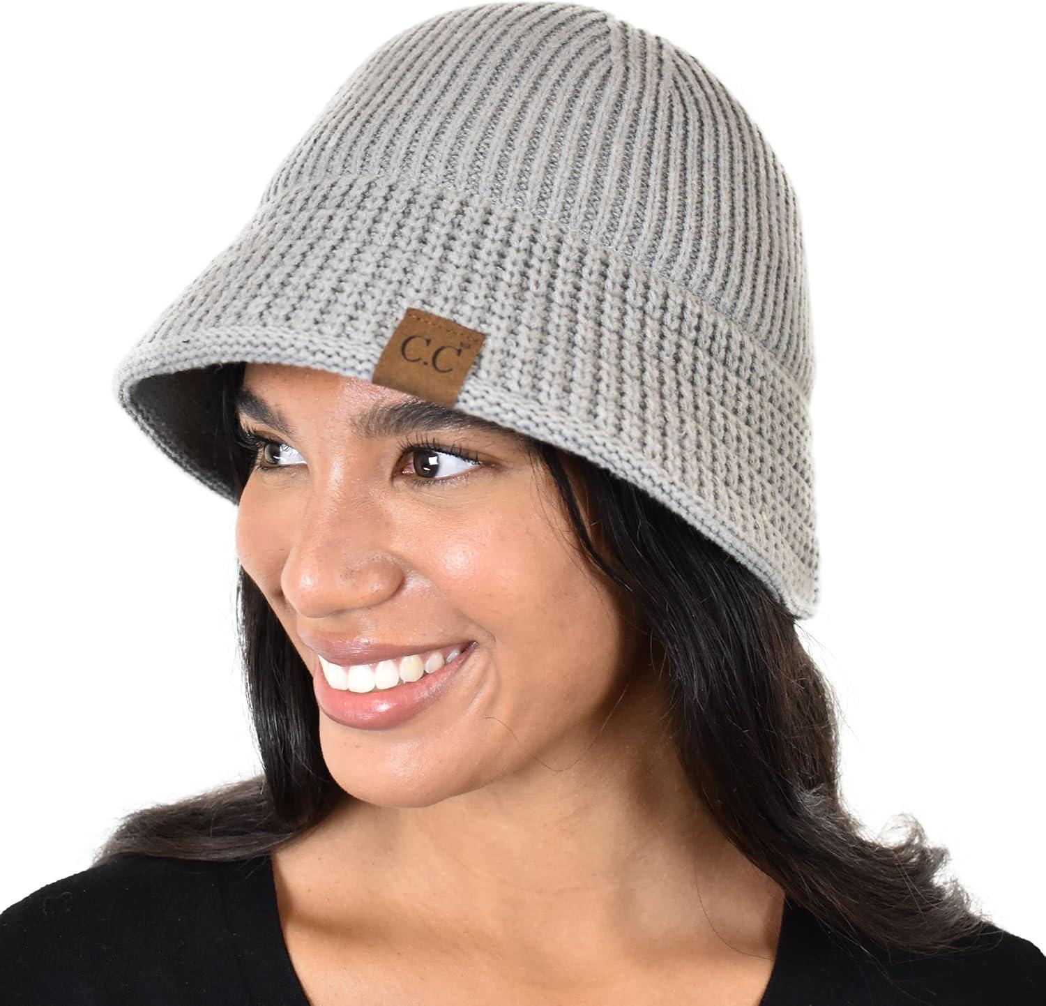 C.C Unisex Winter Cable Knit Packable Vintage Cloche Bucket Hat(Light Melange Gray)