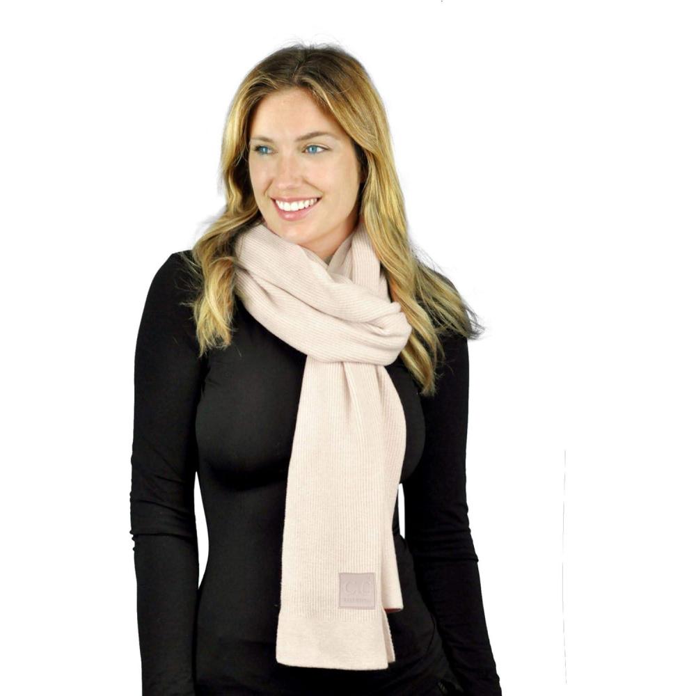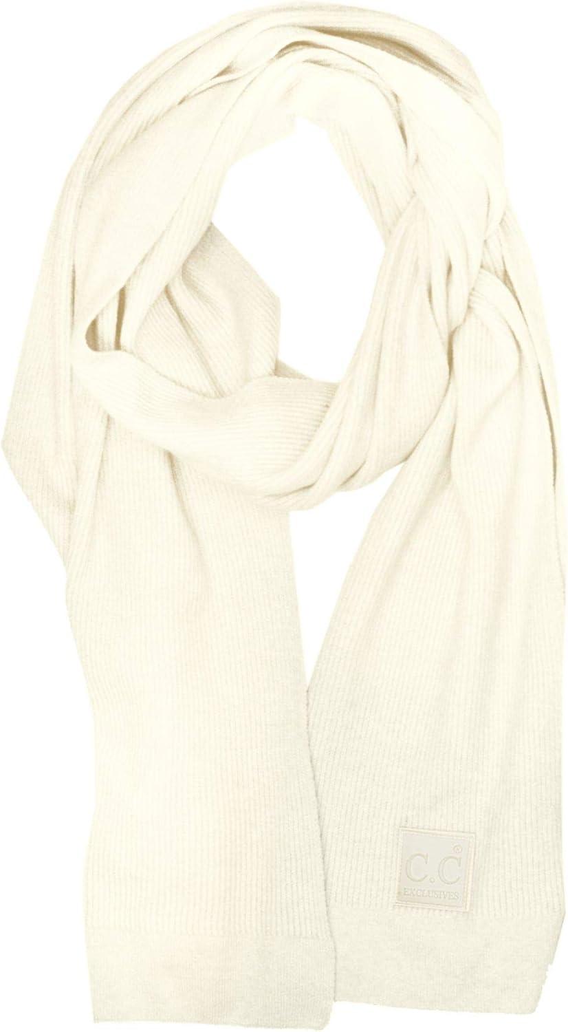 C.C Unisex Winter Thick Ribbed Knit Stretchy Plain Extra Long Scarf Wrap(Ivory)