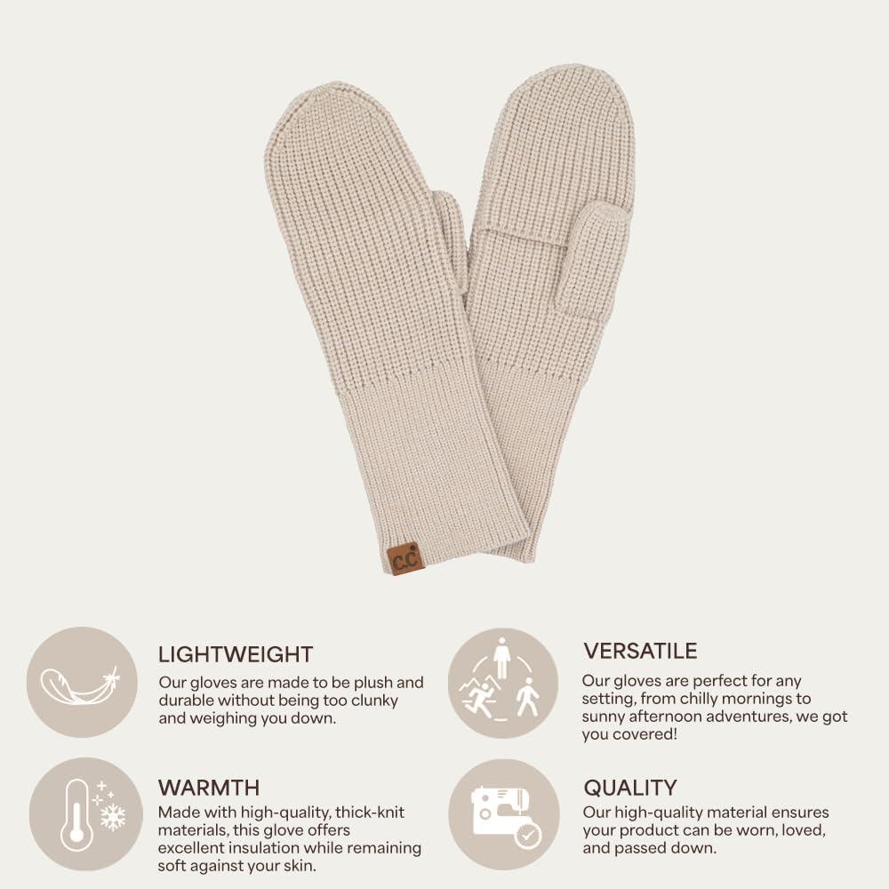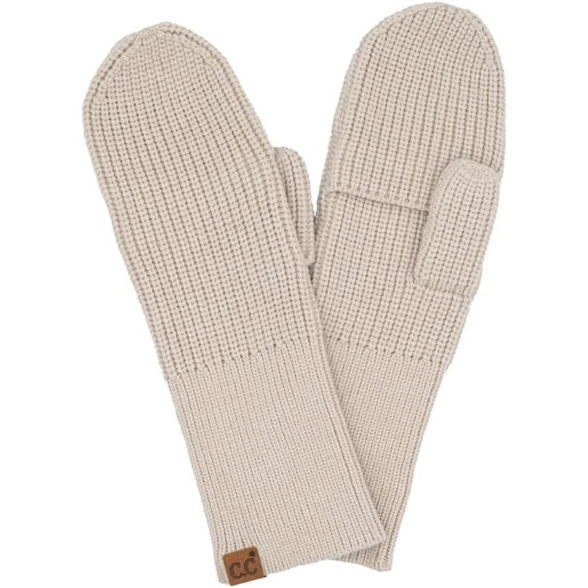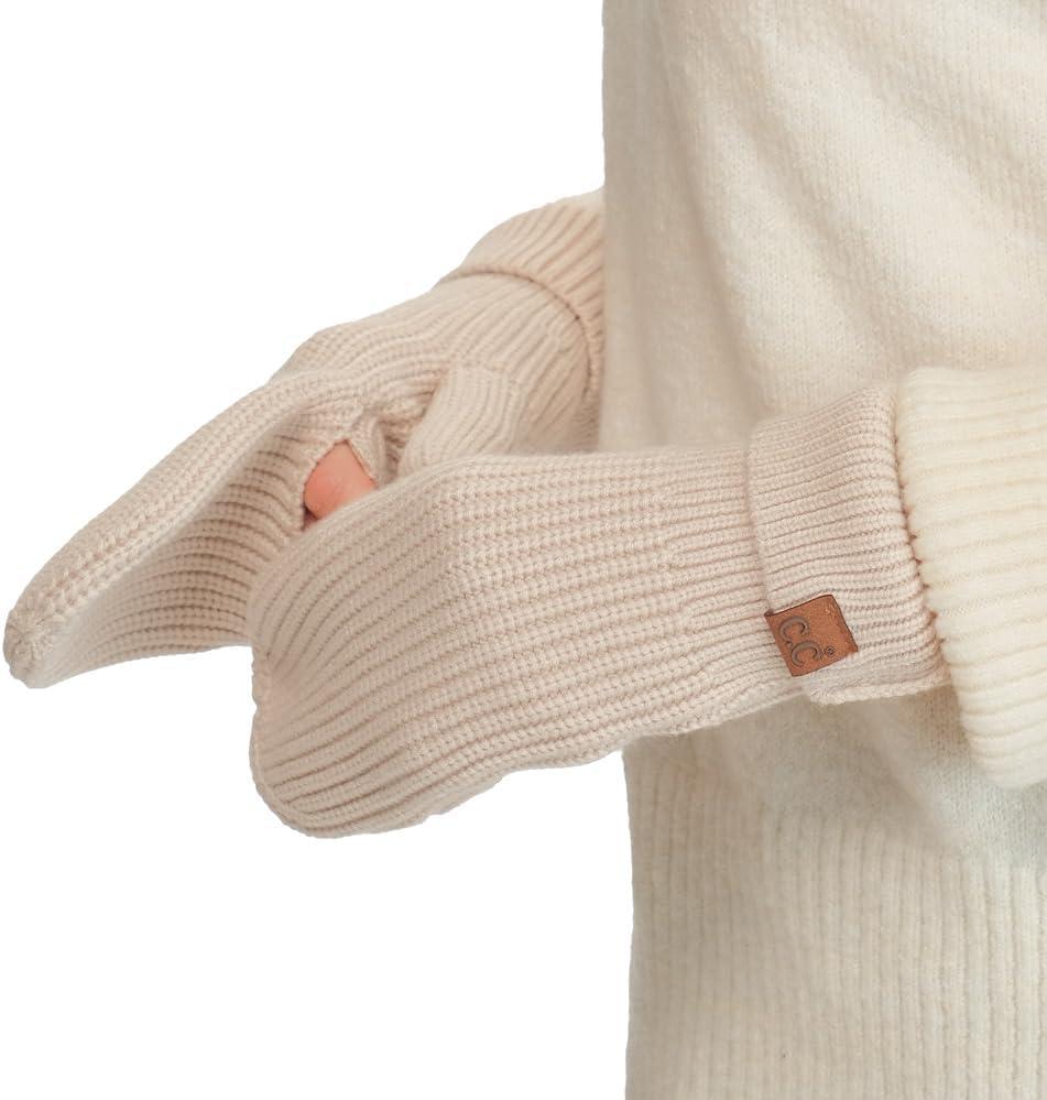 C.C Waffle Knit Mittens For Women - Acrylic Stretchable Soft Warm Knit Cold weather Winter Gloves(Convertible - Beige)