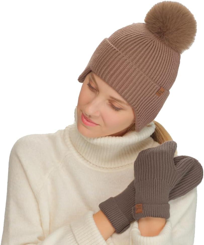 C.C Waffle Knit Mittens For Women – Acrylic Stretchable Soft Warm Knit Cold weather Winter Gloves(Convertible – Mocha)