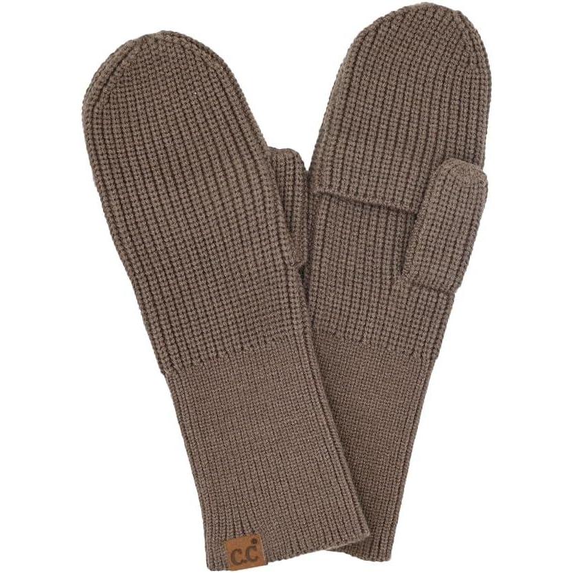 C.C Waffle Knit Mittens For Women - Acrylic Stretchable Soft Warm Knit Cold weather Winter Gloves(Convertible - Mocha)