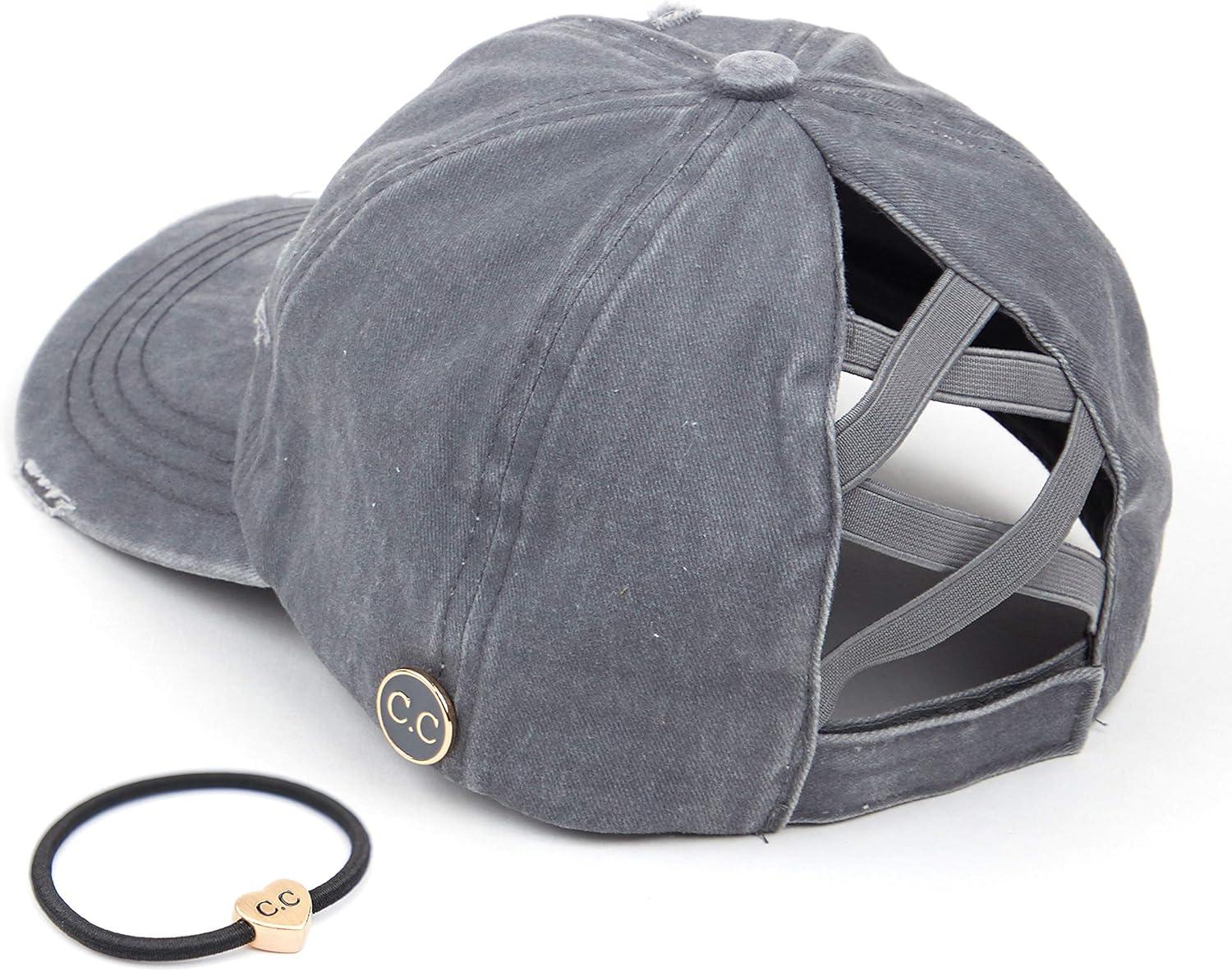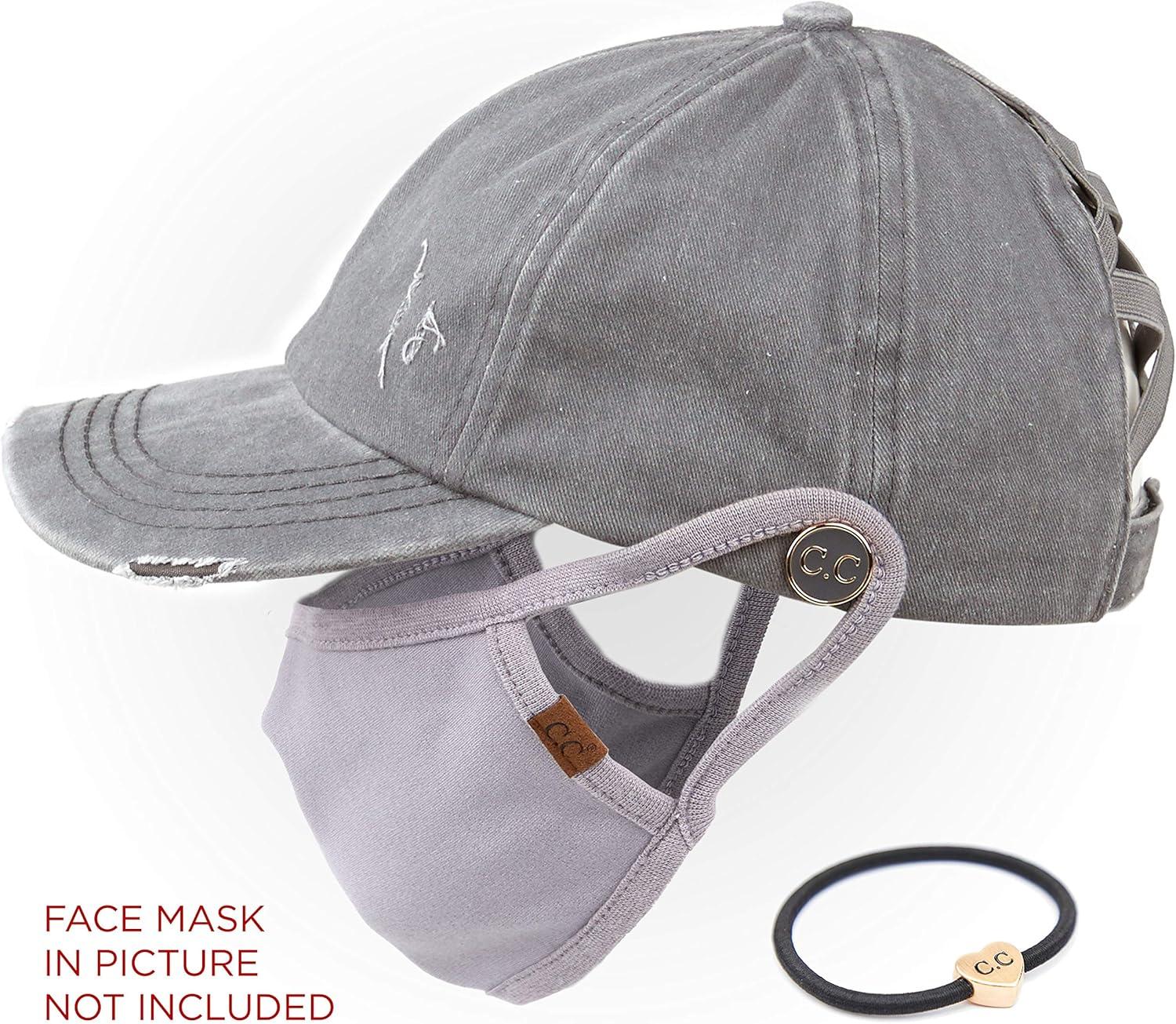 C.C Washed Denim Criss-Cross Ponytail Cap Epoxy Button for face mask (Face Mask not Included) (BT-799)(Grey)