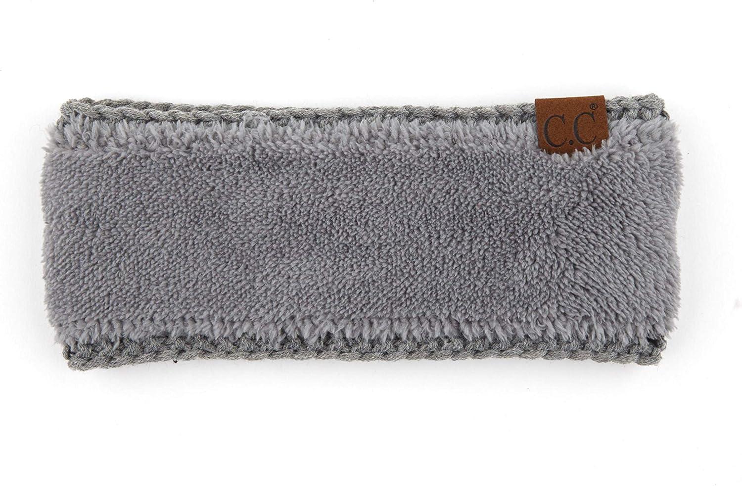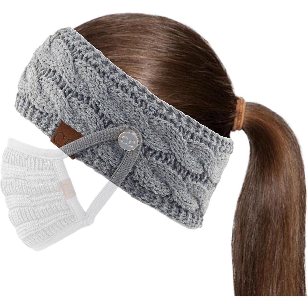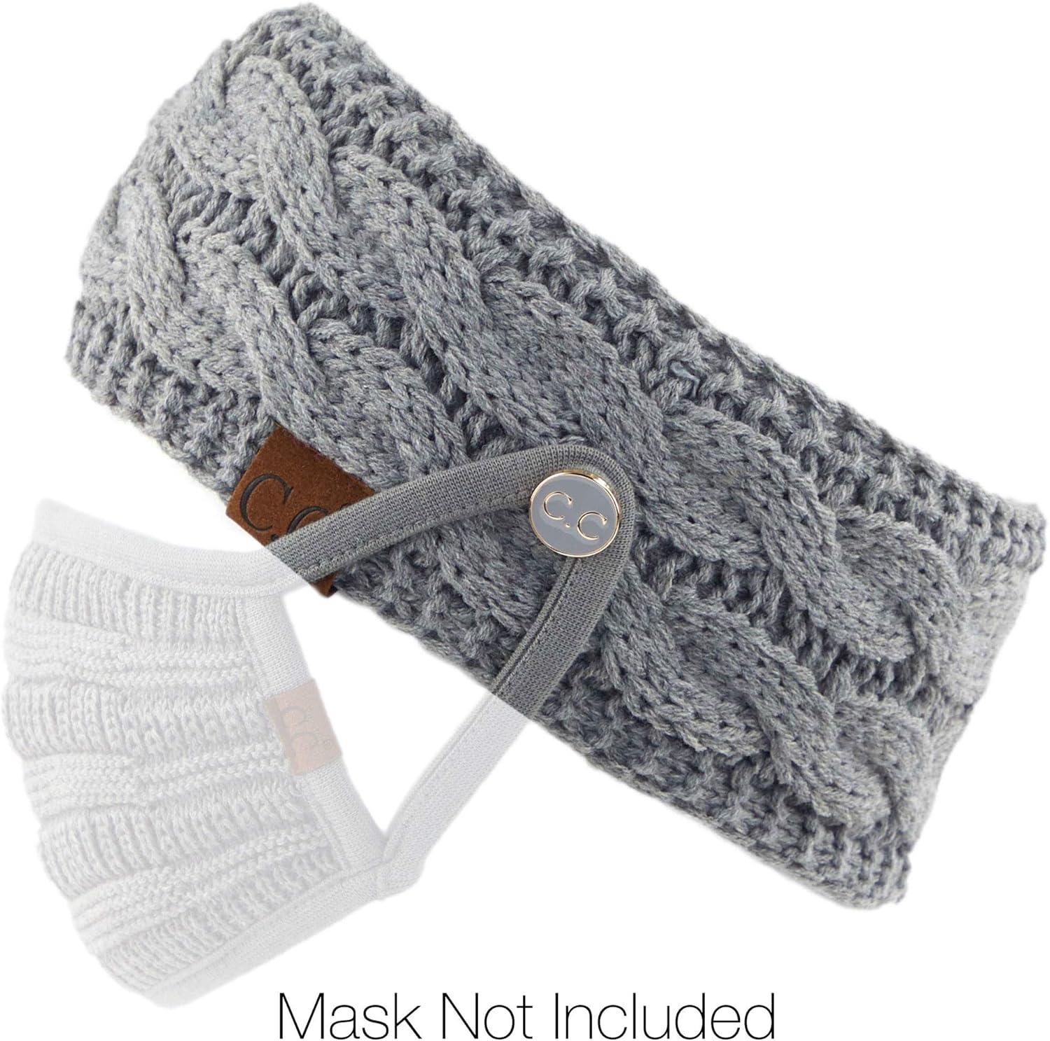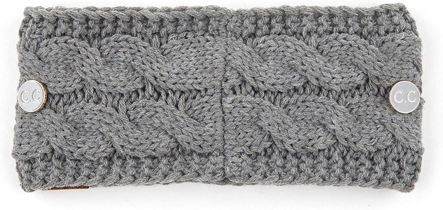 C.C Winter Fuzzy Fleece Lined Thick Knitted Diagonal Stripes Criss-Cross Pattern Headband Headwrap (HW-2060)(A button Lt mel Grey)