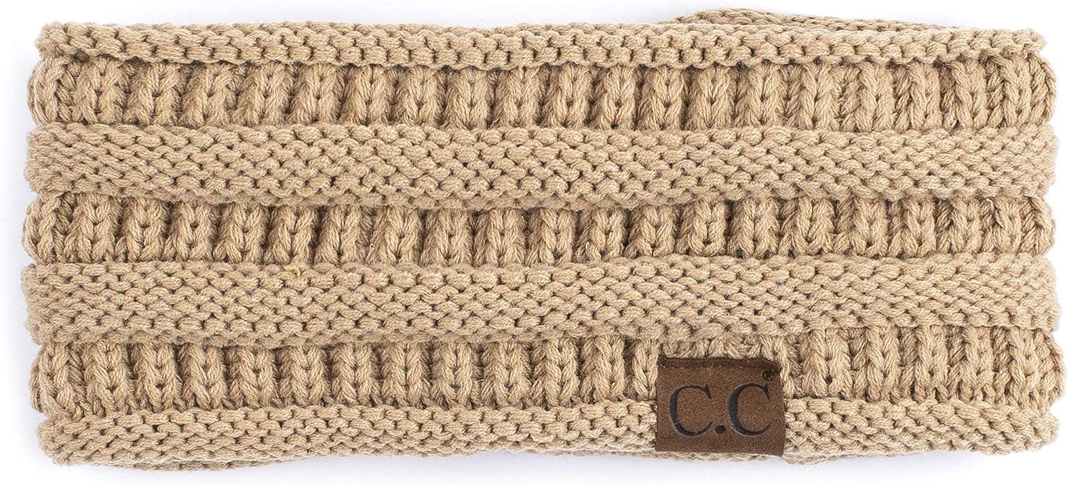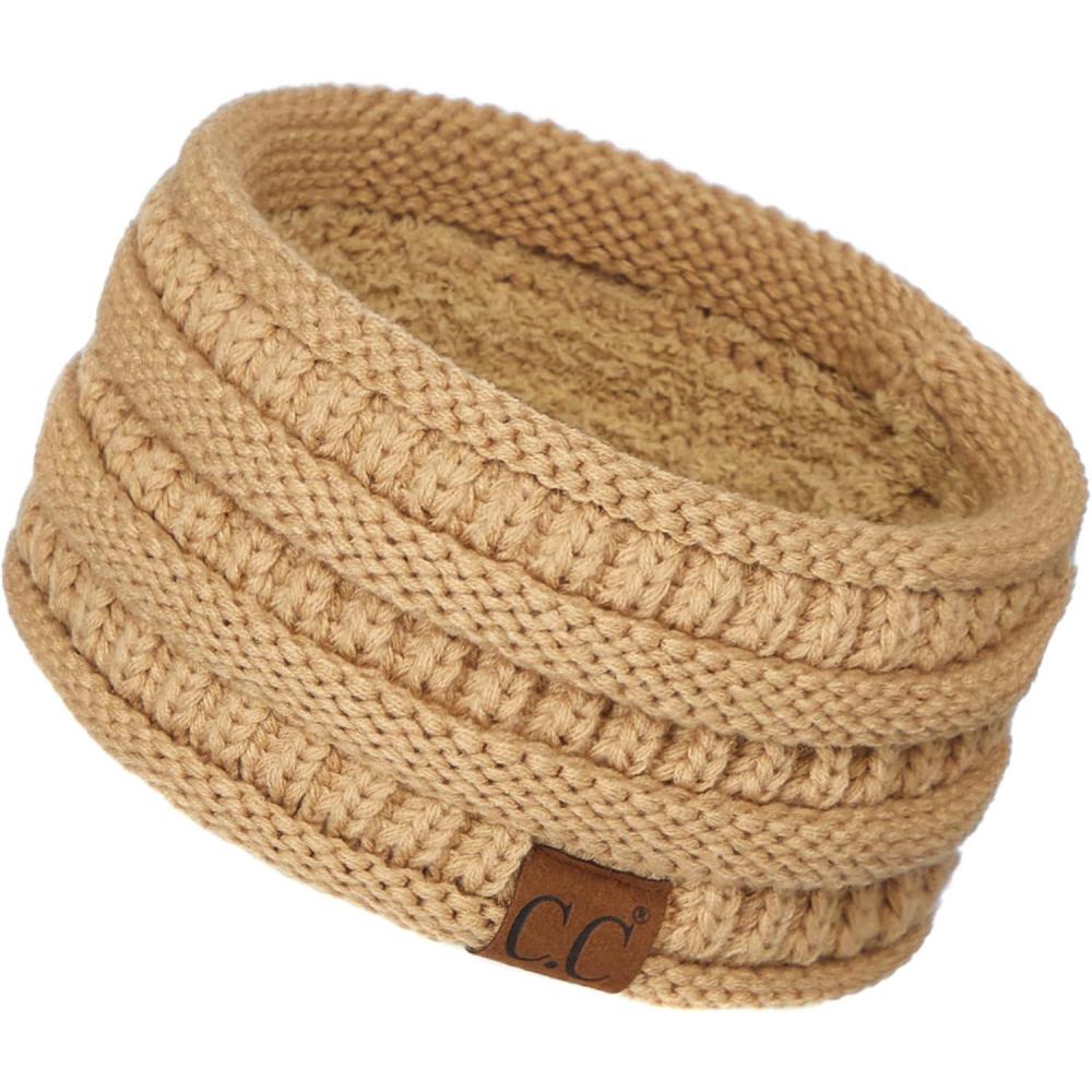 C.C Winter Fuzzy Fleece Lined Thick Knitted Diagonal Stripes Criss-Cross Pattern Headband Headwrap (HW-2060)(a Ribbed-Camel)